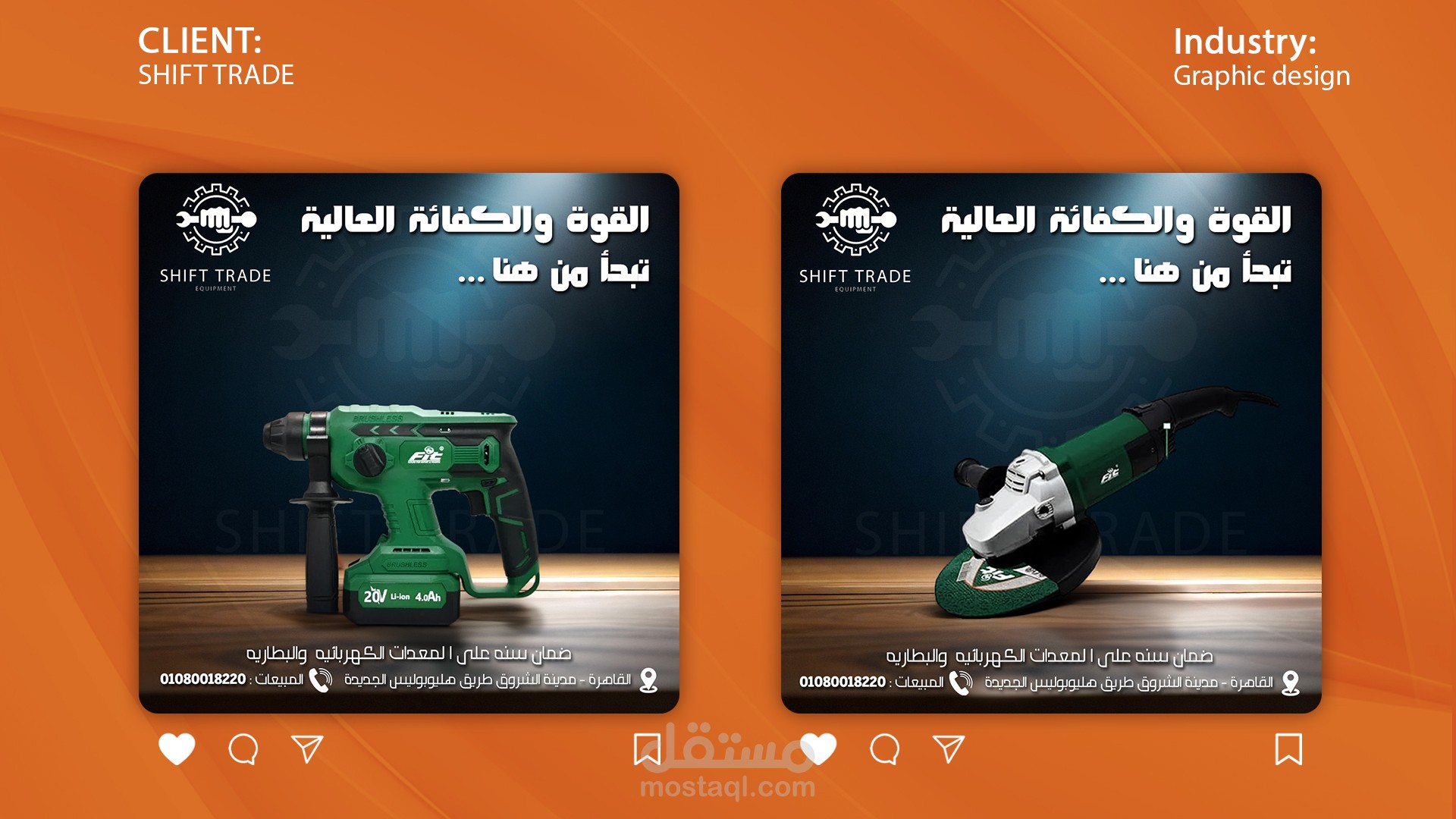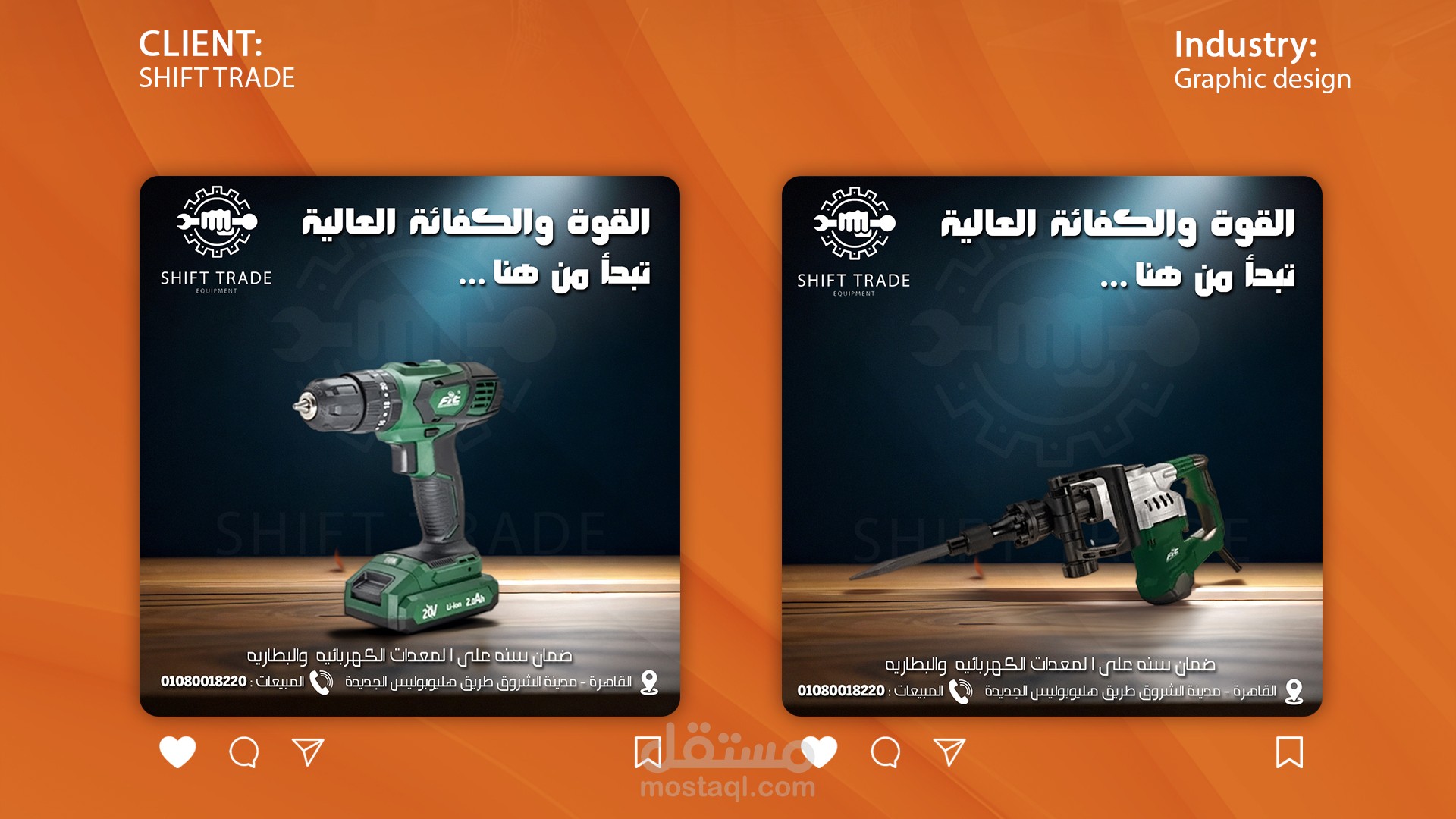 اعتمدت في العمل على الصور الأصلية التي تم توفيرها من العميل للمعدات، وتم توظيفها داخل تصاميم جذابة تعكس هوية الشركة وتبرز جودة منتجاتها وخدماتها بشكل واضح واحترافي.