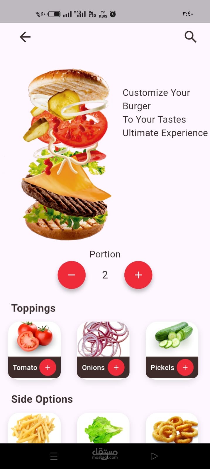 تطبيق مخصص لطلب البرجر يهدف إلى توفير تجربة طلب سهلة وسريعة للمستخدم من خلال واجهة بسيطة وتصميم عصري يركز على راحة المستخدم وسلاسة التنقل داخل التطبيق