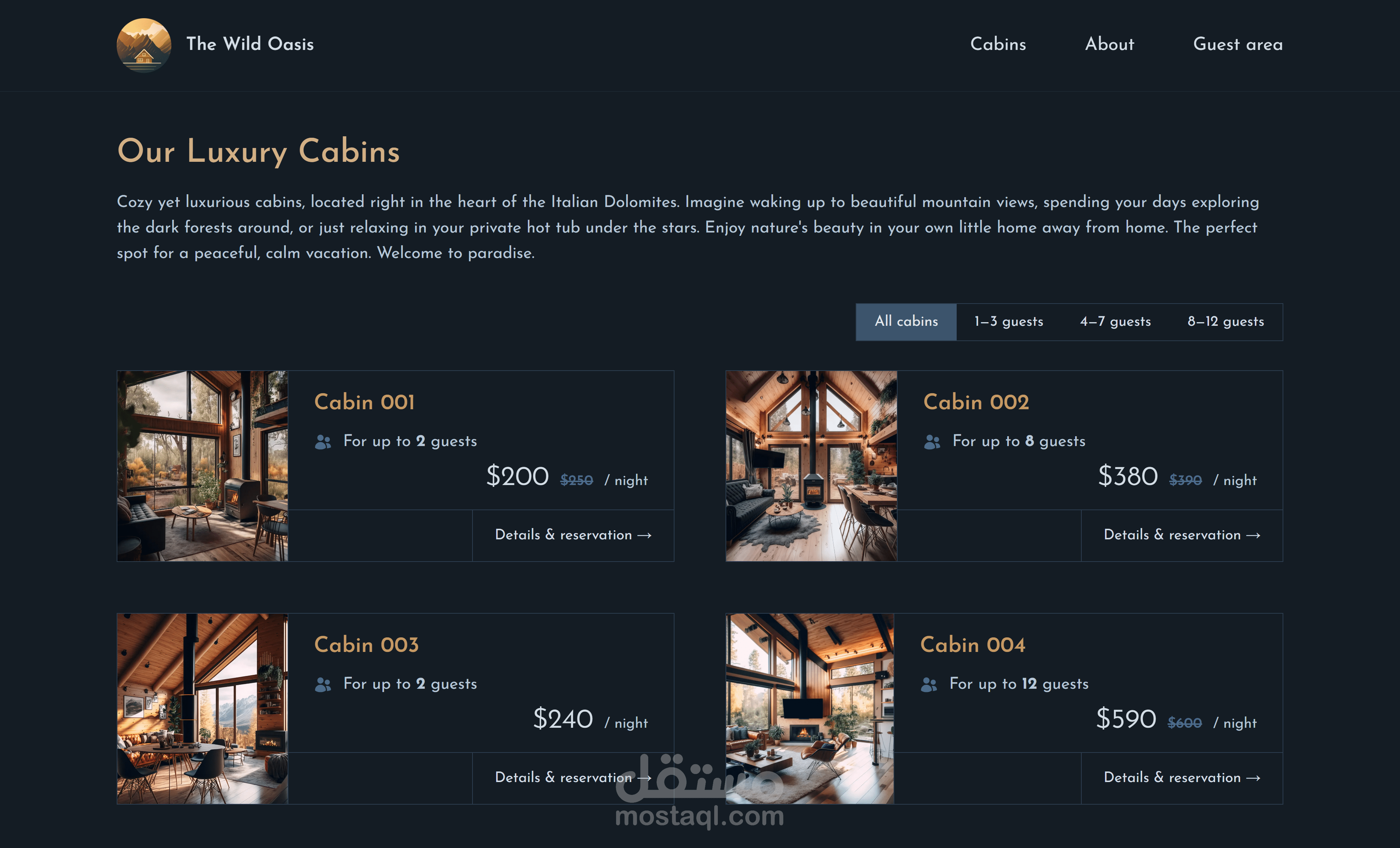 The Wild Oasis is a modern, high-performance booking platform for a family-run luxury cabin. Designed for travelers seeking tranquility and nature, this full-stack application enables users to explore cabins, manage reservations, and personalize their guest profiles—all within a seamless, responsive interface.