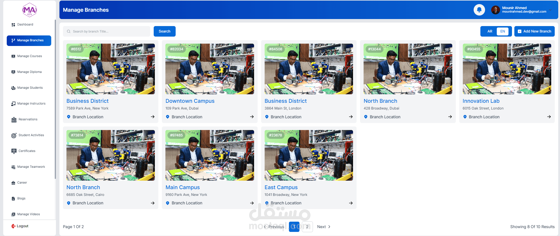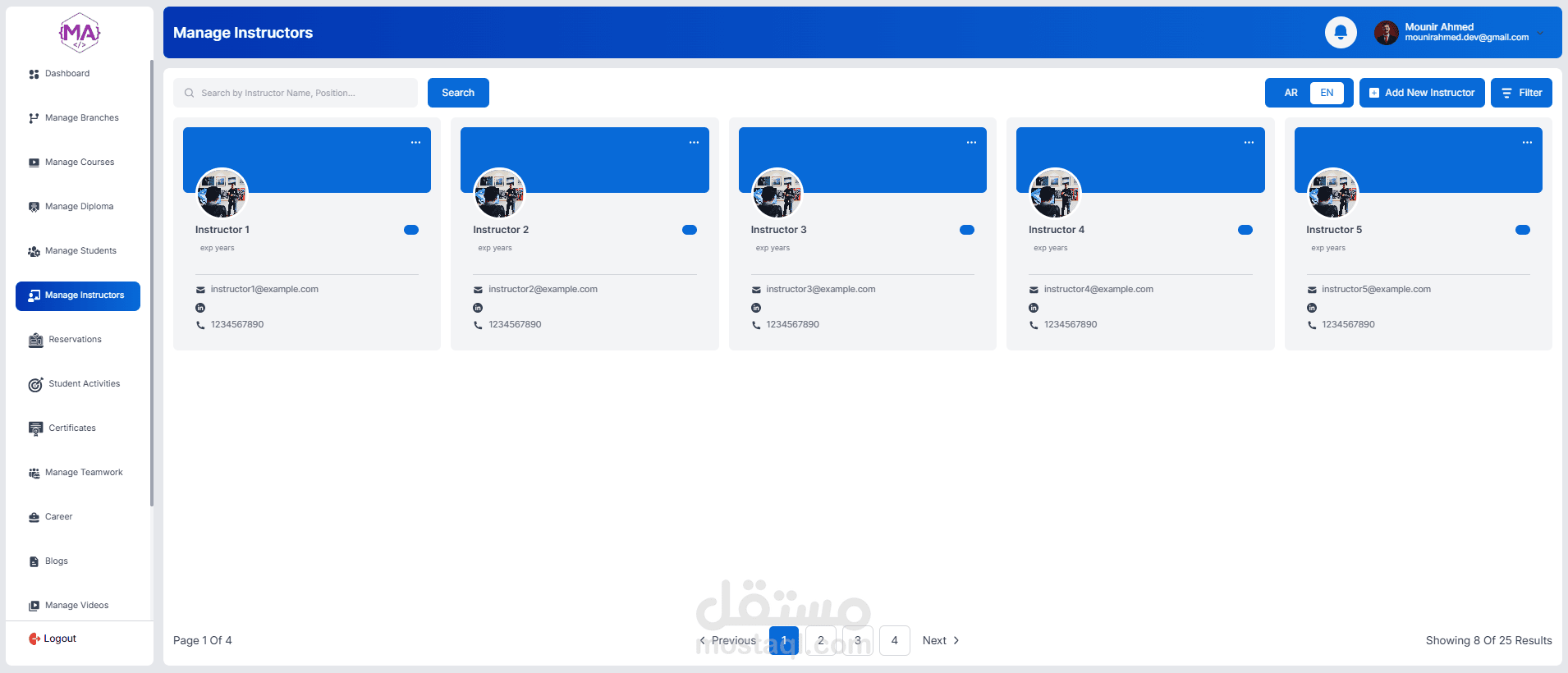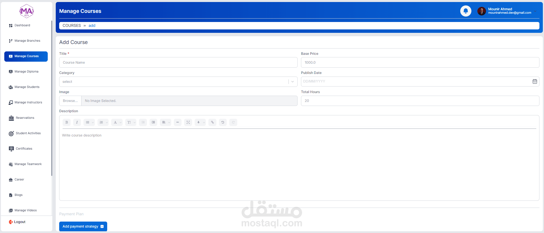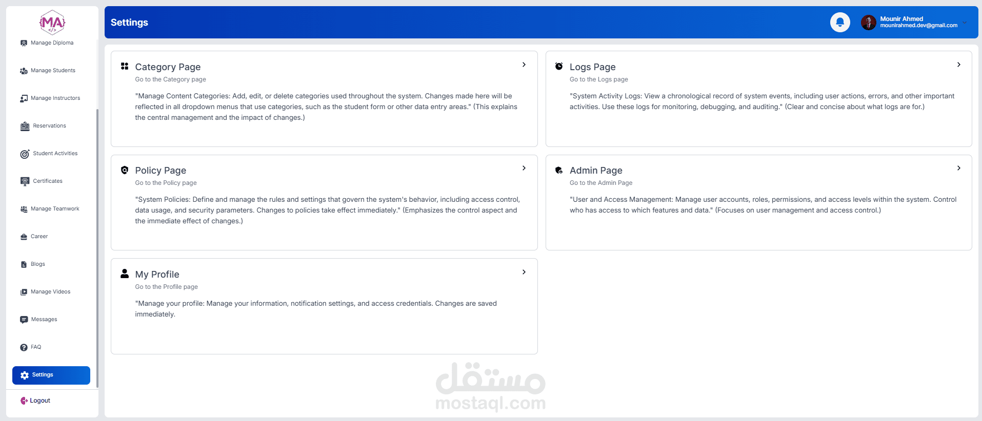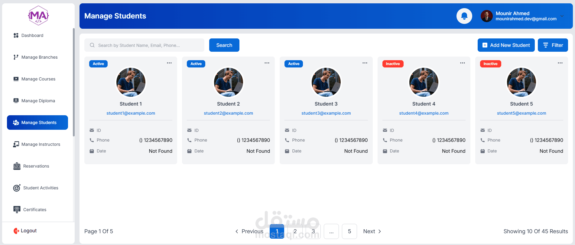 A full-featured educational management dashboard, role-based for managing courses, students, instructors, and operations. Includes student enrollment, course scheduling, reservations, certificates, analytics, and admin controls. Built with a responsive UI and real-time data management.