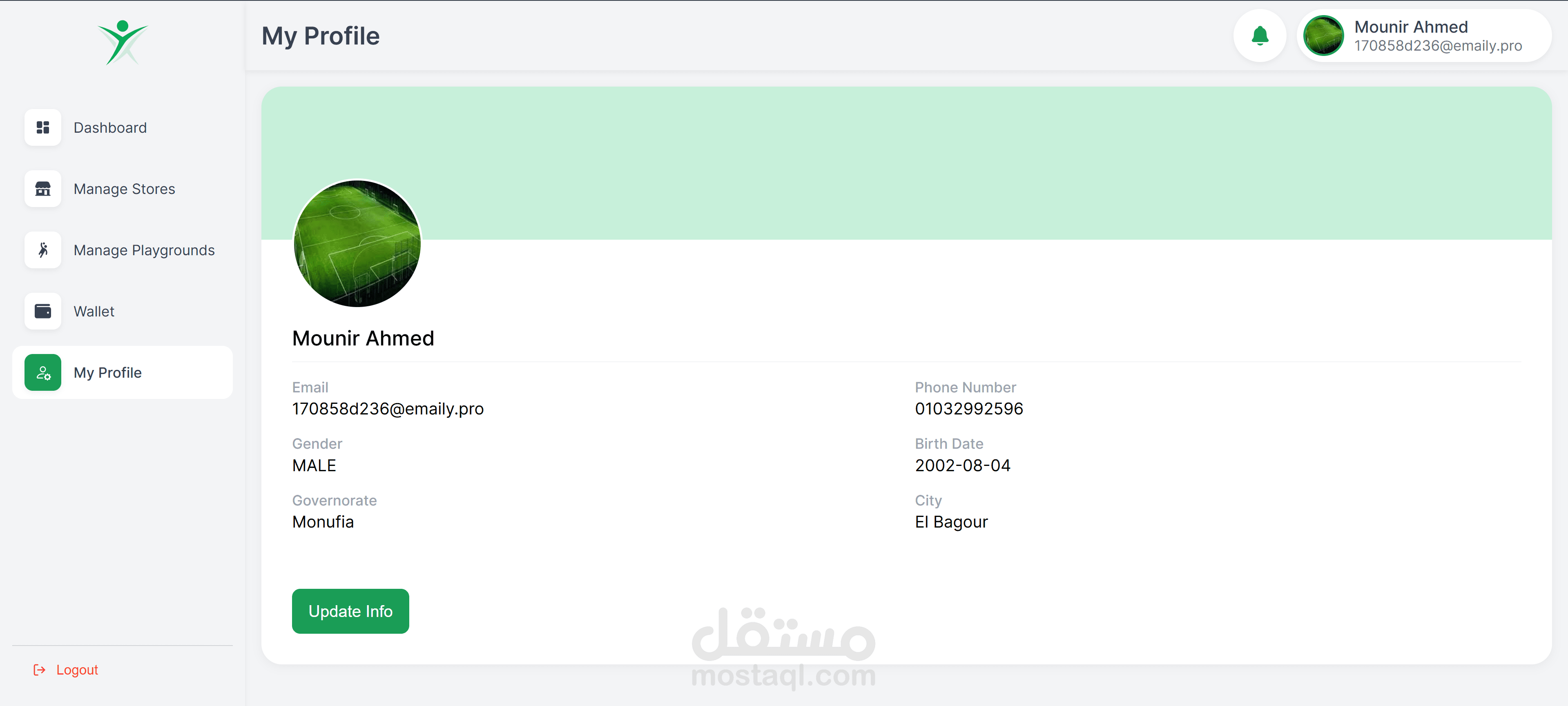 Developed the complete front-end of a mobile-friendly e-commerce and playground booking app using React.js and Tailwind CSS. The app allows users to browse playgrounds, check availability, book time slots, and manage payments. Integrated real-time updates and booking status using React Query, with API communication to an ESP module and Arduino Uno that manages on-site hardware like gate access to the playground through a one-time password that is generated on booking