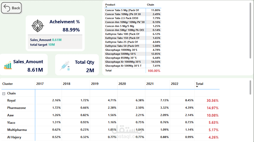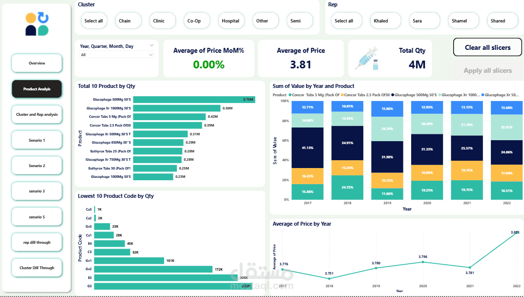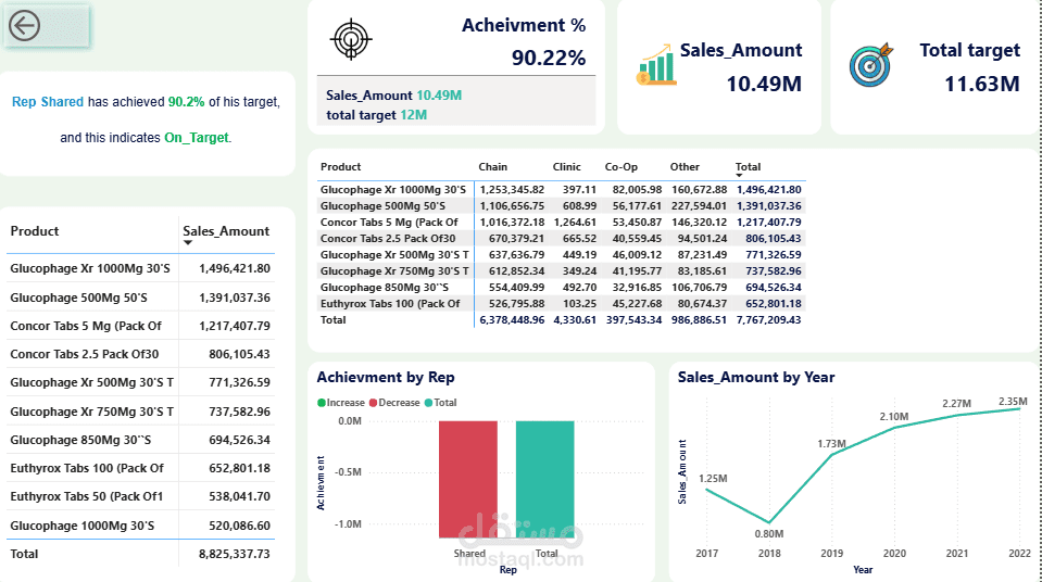 This Power BI dashboard provides insights into pharmaceutical sales performance using data from Excel.