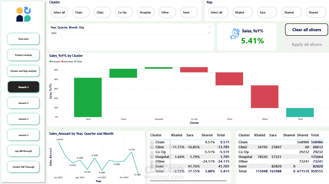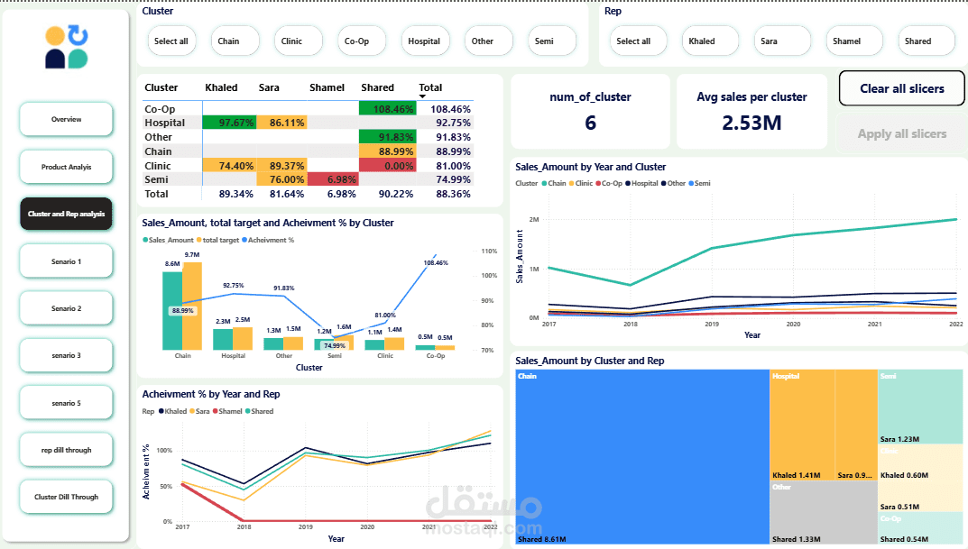 It highlights key KPIs, representative performance, product trends, and cluster-level achievements.