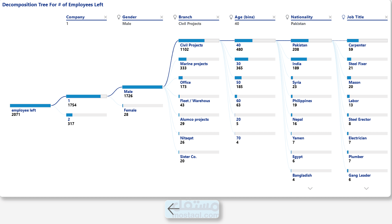 The dashboard helps management make data-driven decisions and track key HR performance indicators.
