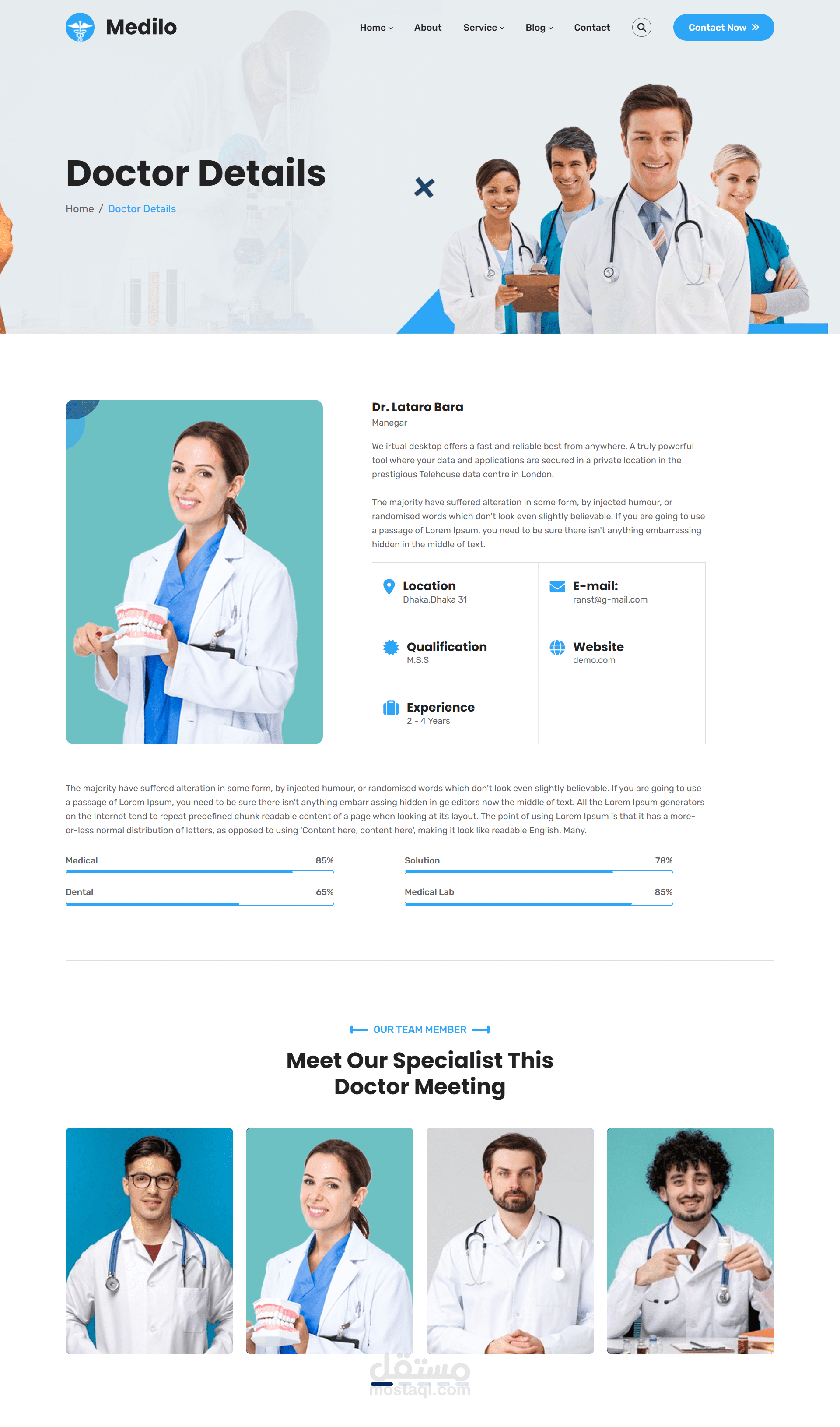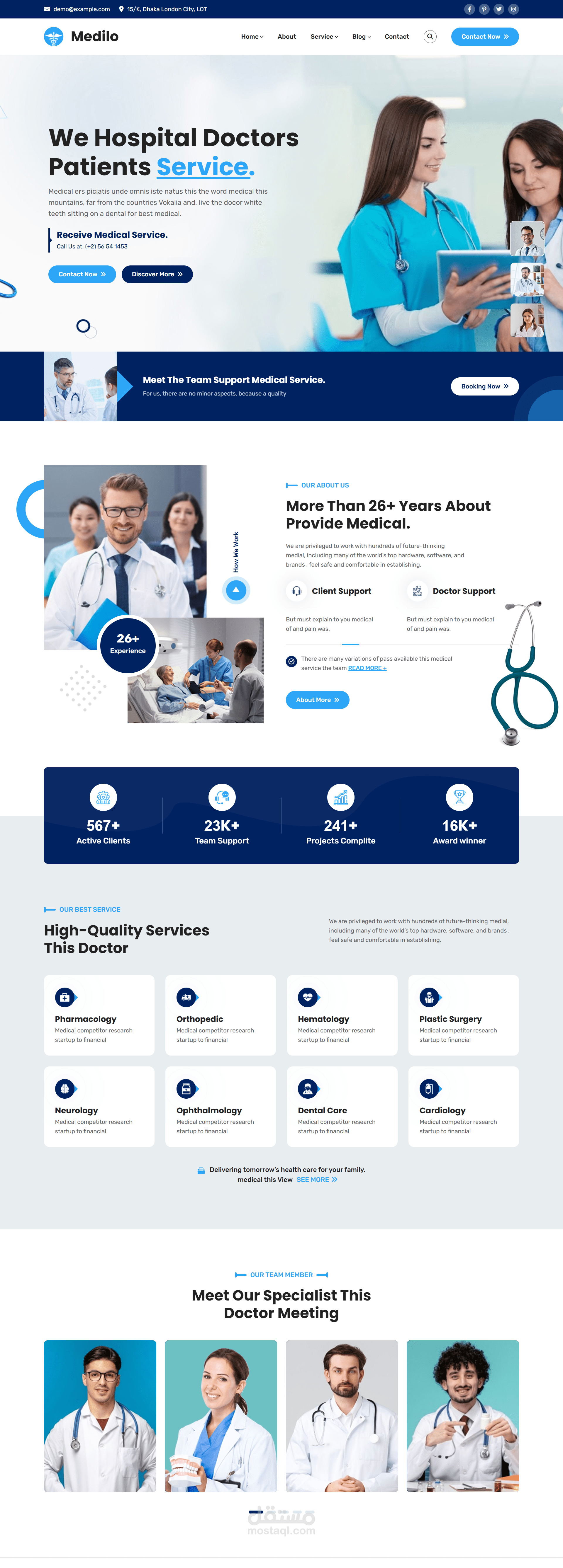 قمت بتطوير واجهة ويب حديثة ومتجاوبة لمنصة رعاية صحية، تركز على تقديم تجربة استخدام سلسة وآمنة تمكّن المرضى من تصفّح التخصصات الطبية وحجز المواعيد بسهولة عبر مختلف الأجهزة.