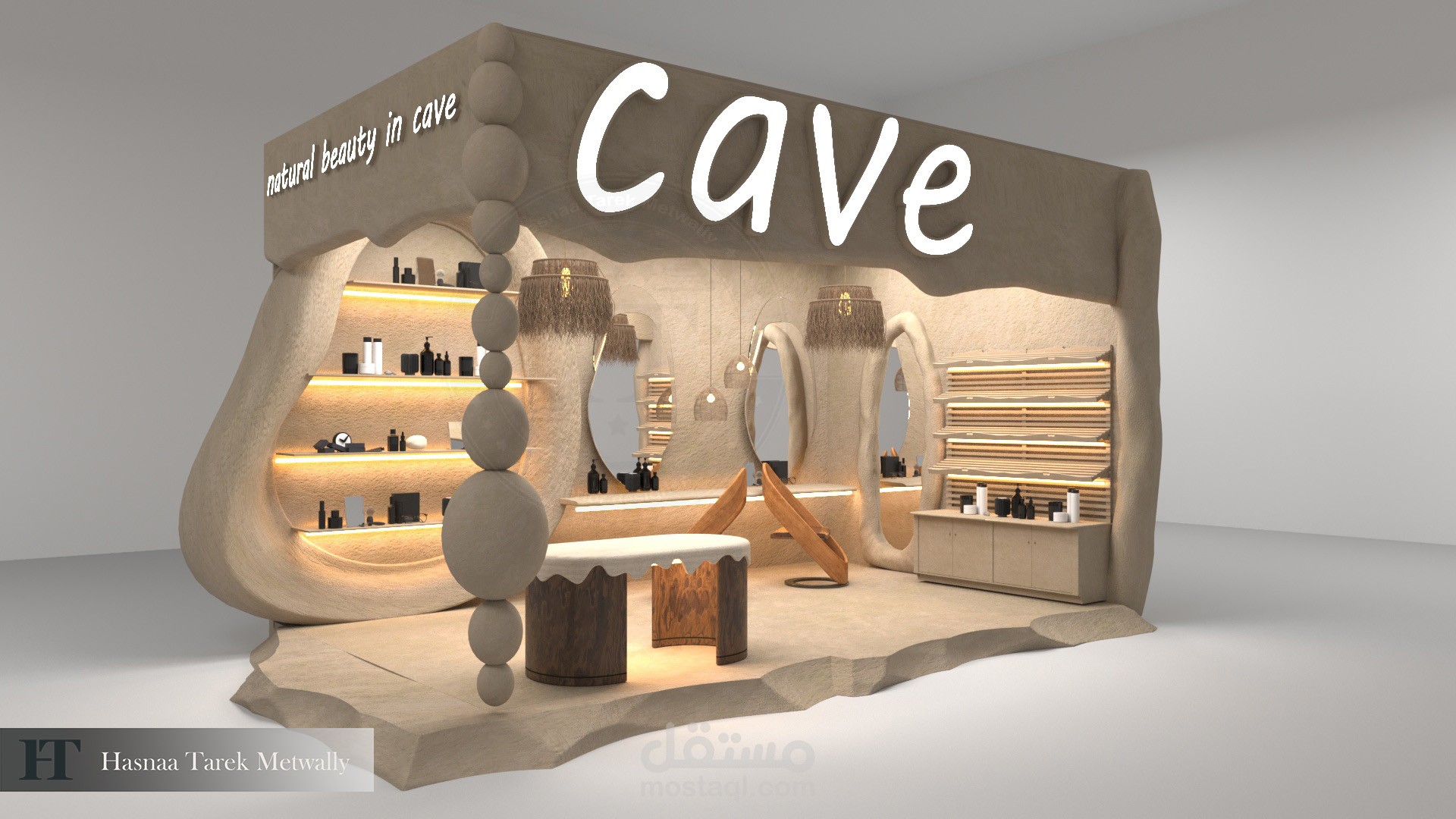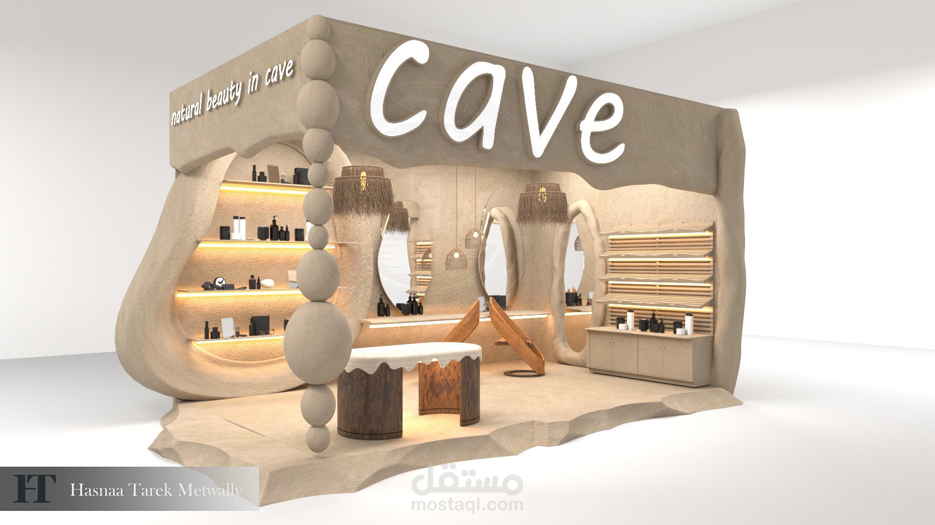 تصميم بوث مبتكر مستوحى من الطبيعة وأشكال الكهوف، يقدّم تجربة بصرية فريدة تعكس هوية العلامة التجارية بأسلوب عضوي دافئ وجذاب.