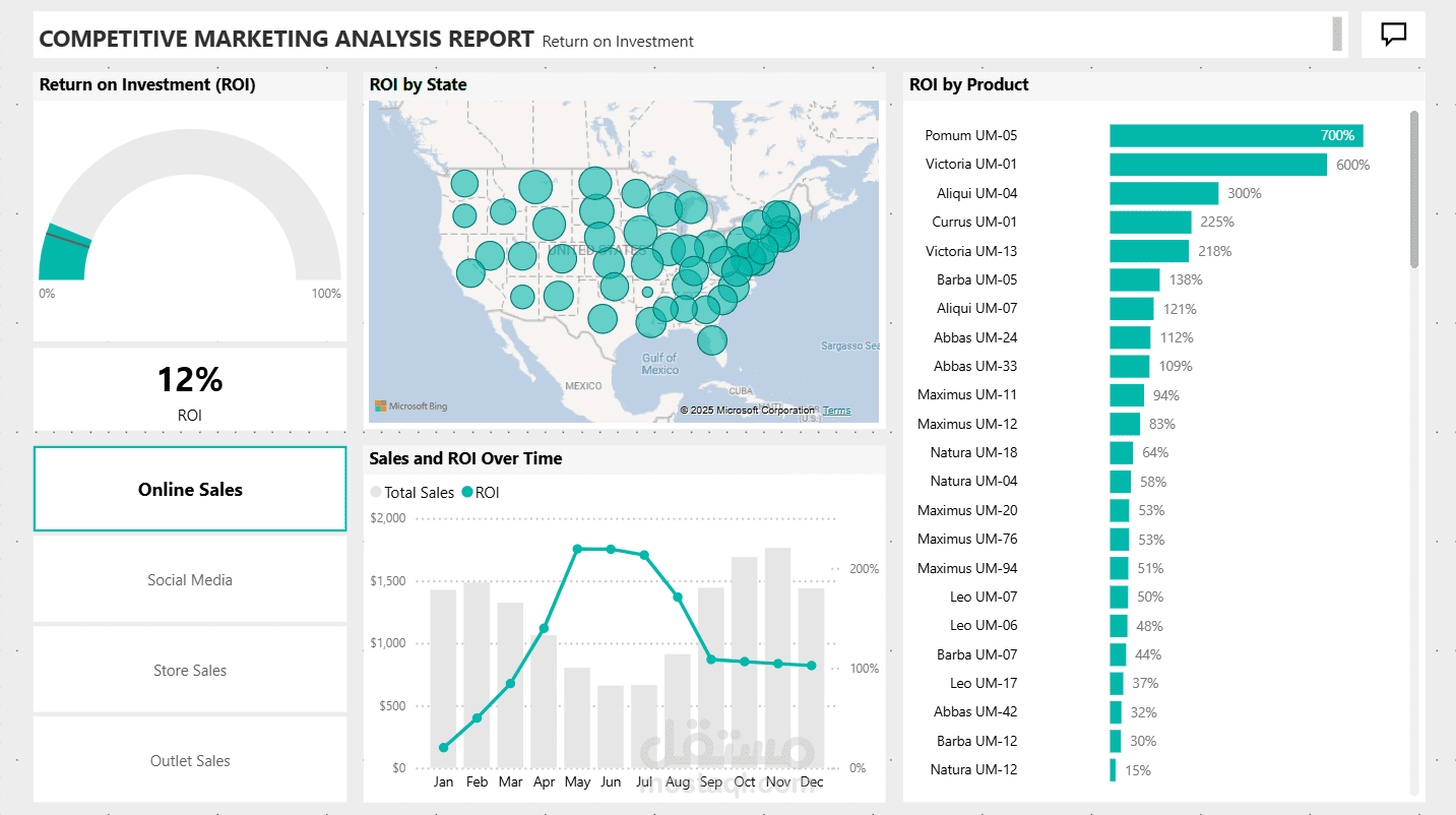 بناء نظام دقيق لحساب عائد الاستثمار التسويقي (ROI) عبر المنتجات، المناطق الجغرافية، والفترات الزمنية، مع تحديد المنتجات الأعلى ربحية.