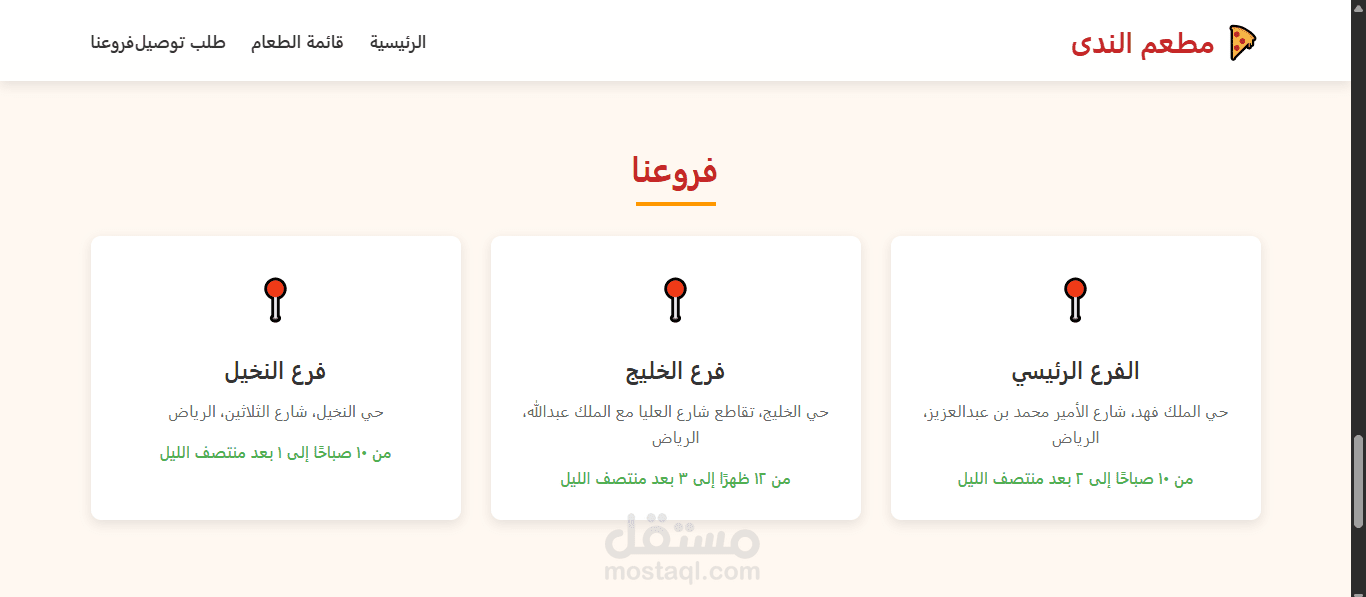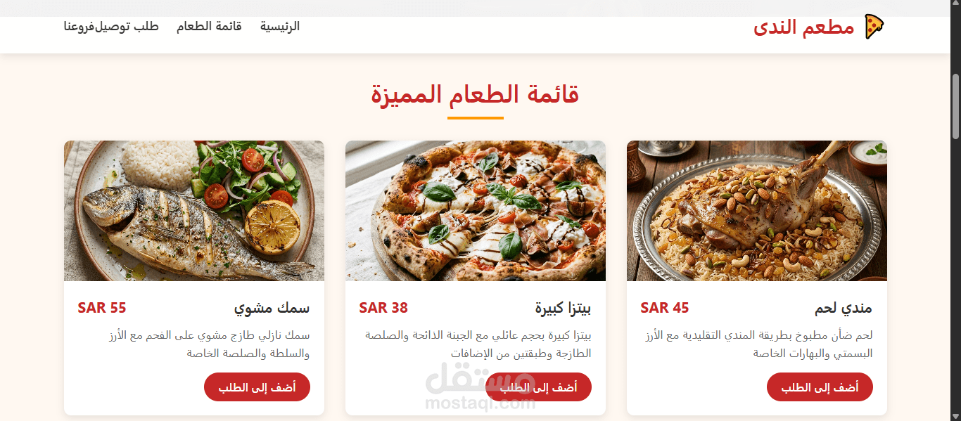 موقع “مطعم وتوصيل الندى” هو واجهة إلكترونية احترافية لمطعم يقدم المأكولات الشرقية والغربية بأعلى جودة، مع إمكانية تصفح قائمة الطعام بسهولة. يحتوي الموقع على صفحة لطلب التوصيل مباشرة، حيث يمكن للزبائن اختيار الأطباق وتحديد بياناتهم وطلب توصيل الطلبات إلى باب المنزل. كما يعرض الموقع فروع المطعم ومواعيد العمل، مع تصميم متجاوب يسهّل التجربة على الزوار. الموقع يدعم تعدد اللغات ويوفر تجربة سلسة للمستخدمين الباحثين عن خدمات الطعام والتوصيل.