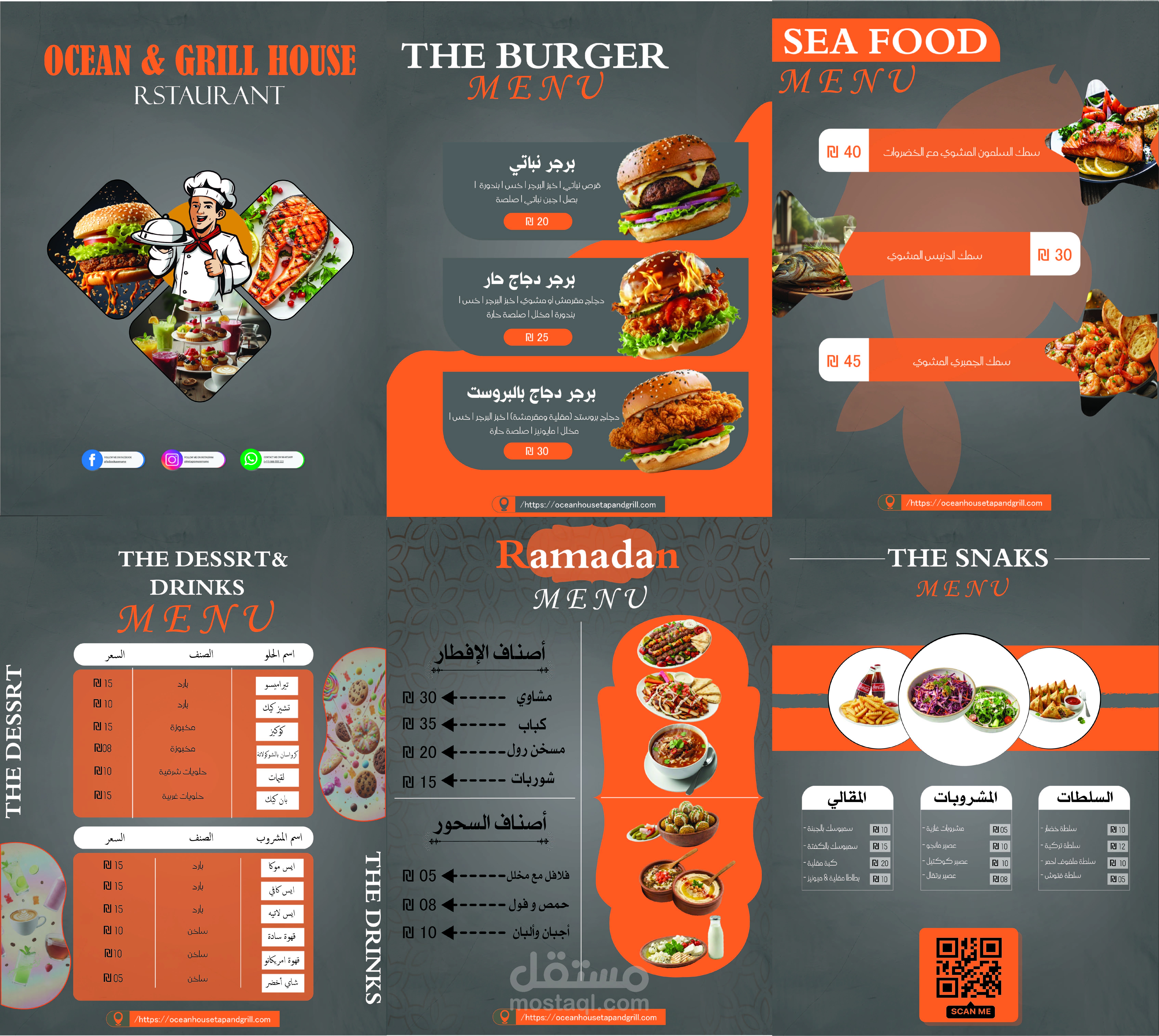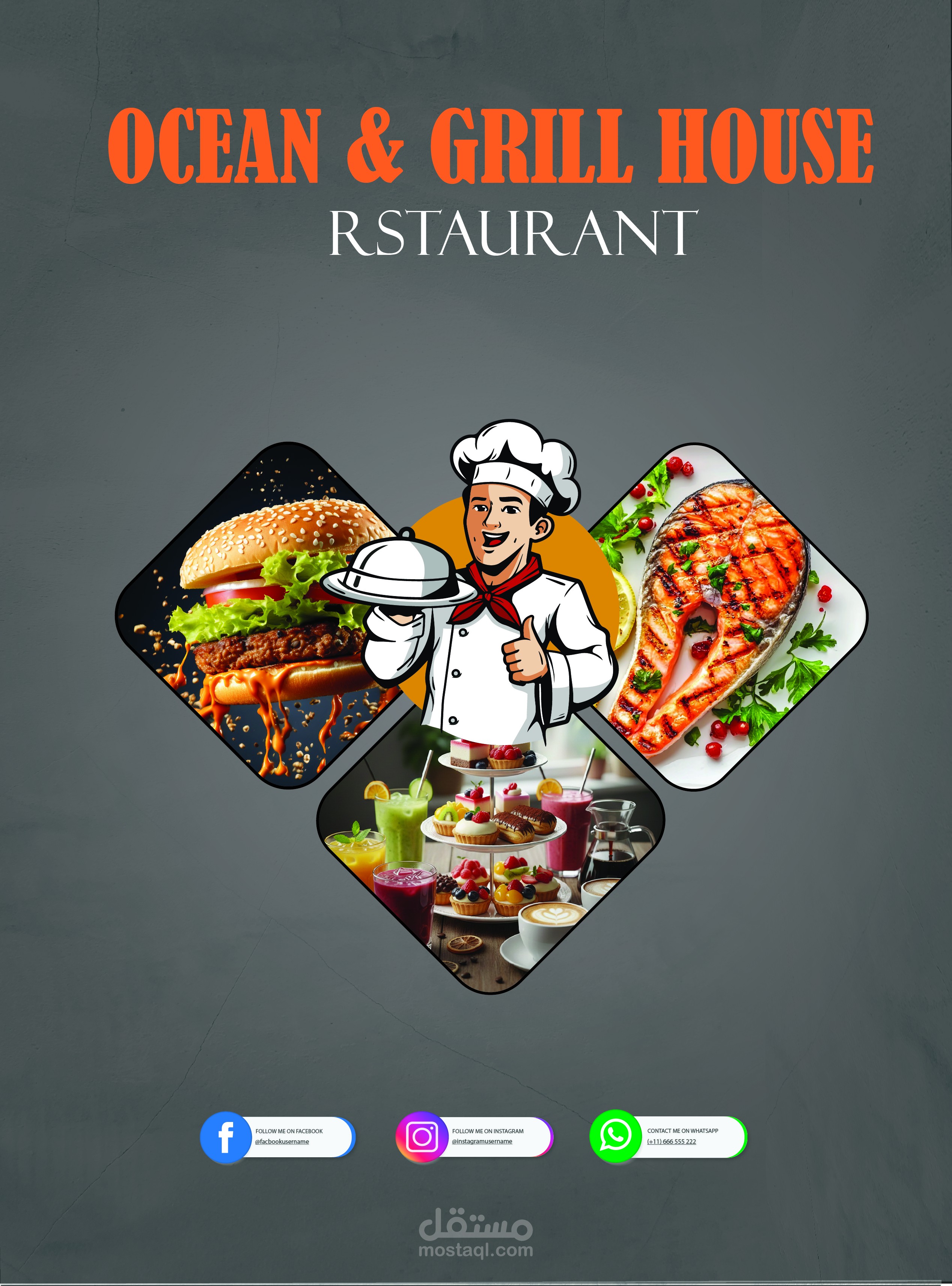 تصميم منيو طعام احترافي لمطعم، تم العمل على توزيع الأقسام بشكل منظم (مقبلات، أطباق رئيسية، مشروبات، حلويات) مع استخدام ألوان متناسقة وصور جذابة تعكس هوية المكان. التصميم بسيط وسهل القراءة، ومهيأ للطباعة بصيغة عالية الجودة. الهدف من العمل إبراز قائمة الطعام بطريقة أنيقة تساعد الزبائن على الاختيار بسهولة."