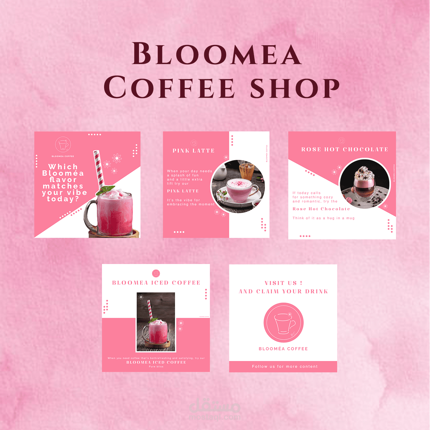 لقد صممت سلسلة بوستات لشركة Bloomea Coffee Shop متوافقة تمامًا مع الهوية البصرية للعلامة التجارية، مع التركيز على جذب العملاء وتعزيز تجربة القهوة. تم اختيار الألوان والخطوط بعناية لتتناسب مع أسلوب المقهى الانثوي ، مع تصميم محتوى واضح وجذاب يبرز المنتجات والعروض.