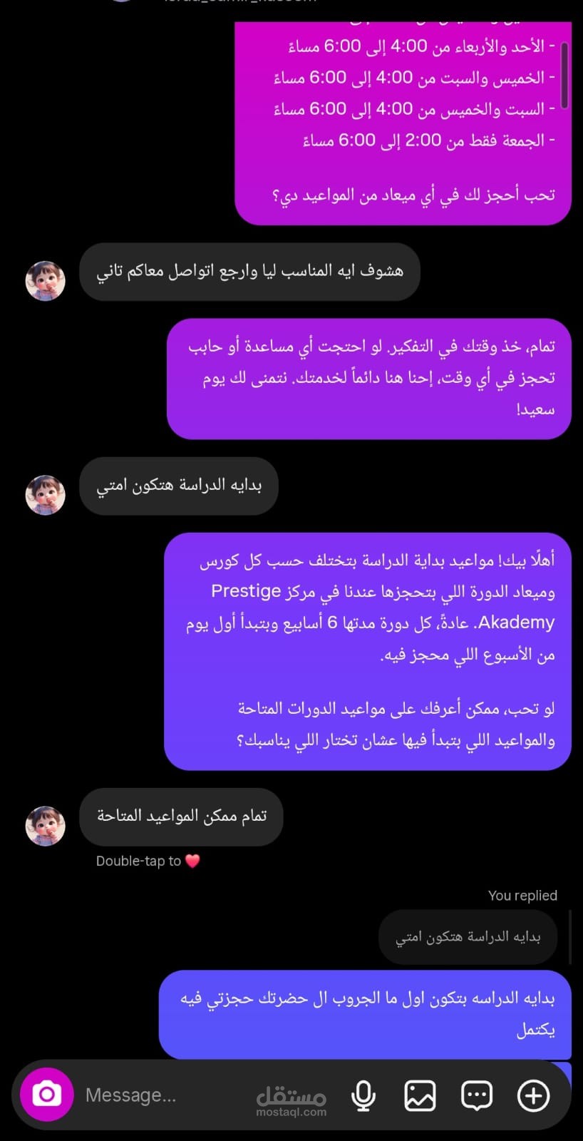 Context-Aware RAG: دمجت تقنية Retrieval-Augmented Generation لجعل الـ AI "واعياً" ببيانات المؤسسة الحية. المساعد الذكي يستعلم عن قواعد بيانات الأسعار، توفر المقاعد، والمواعيد لحظياً عبر APIs داخلية قبل الرد على الطالب.