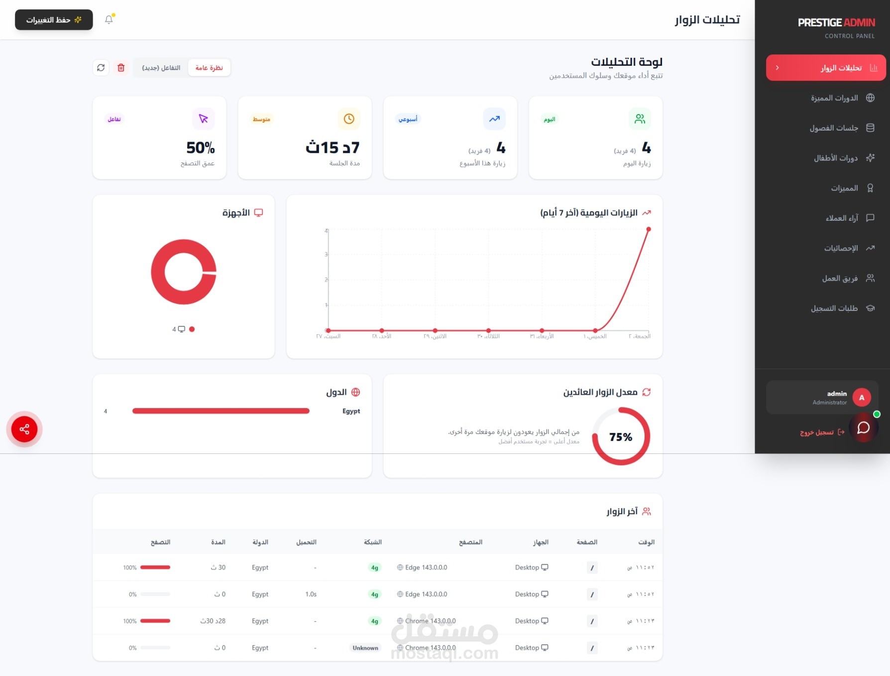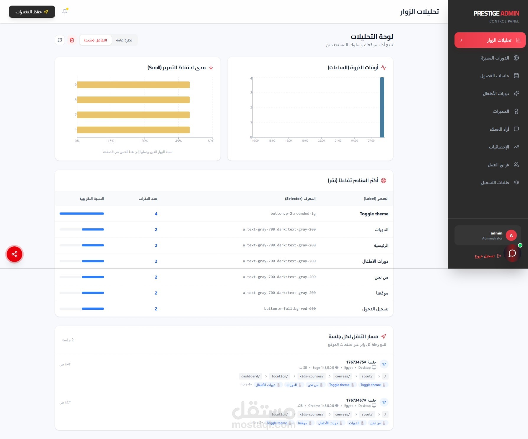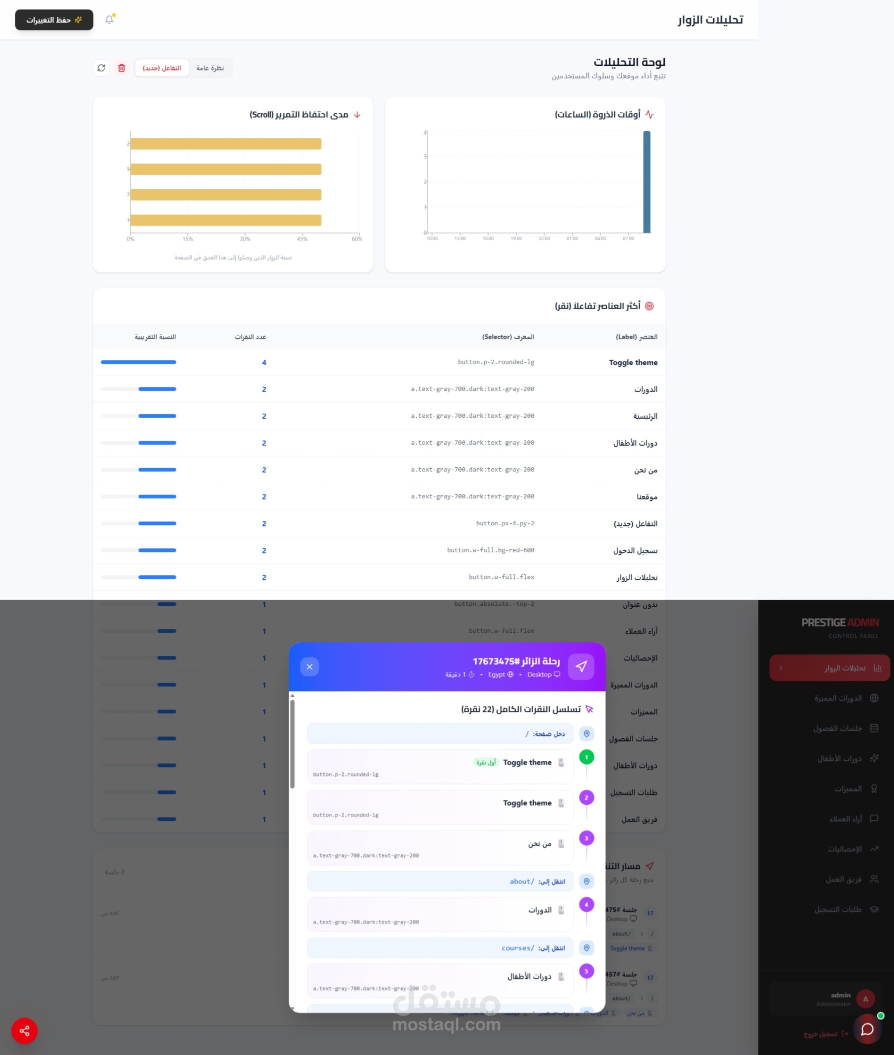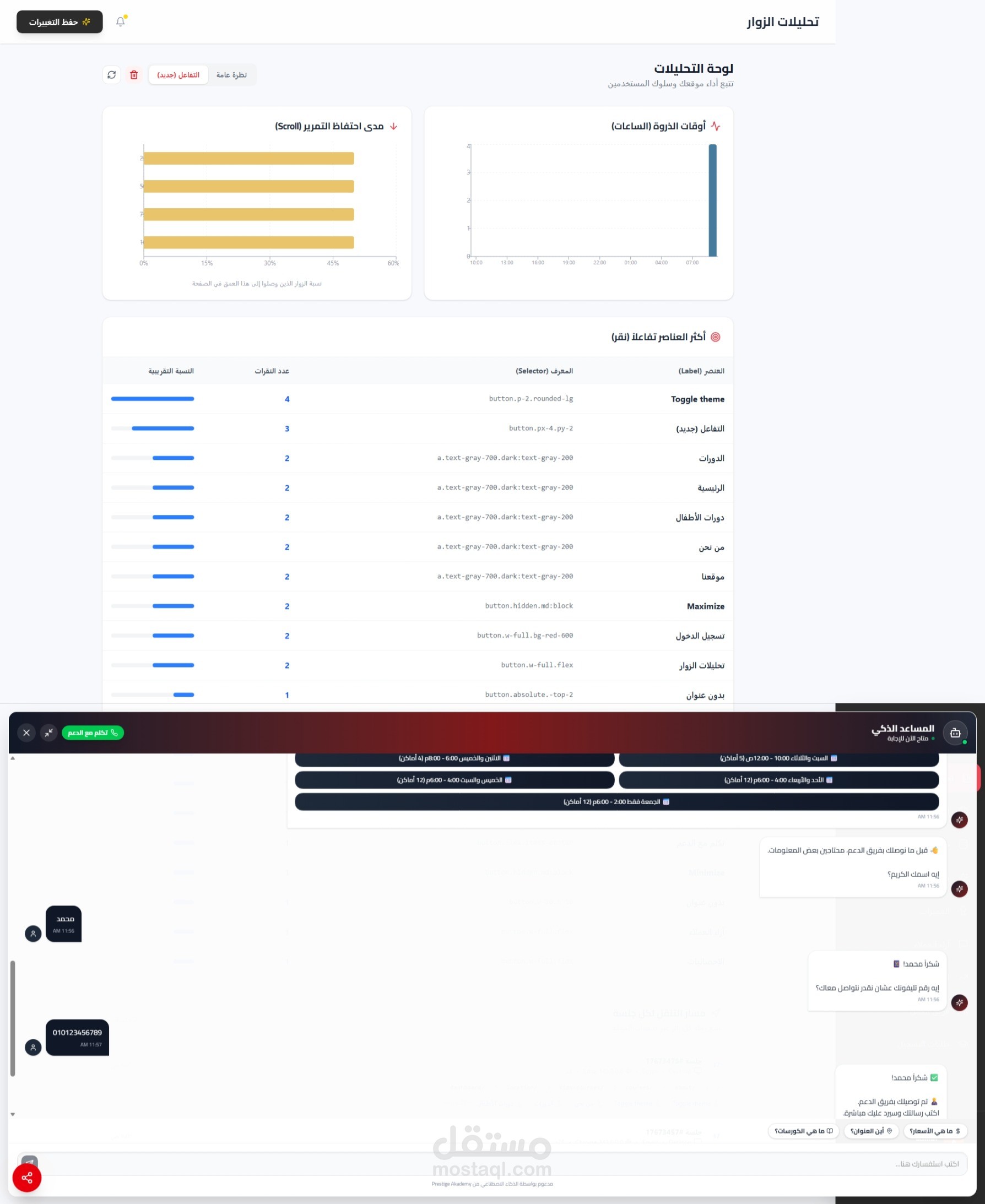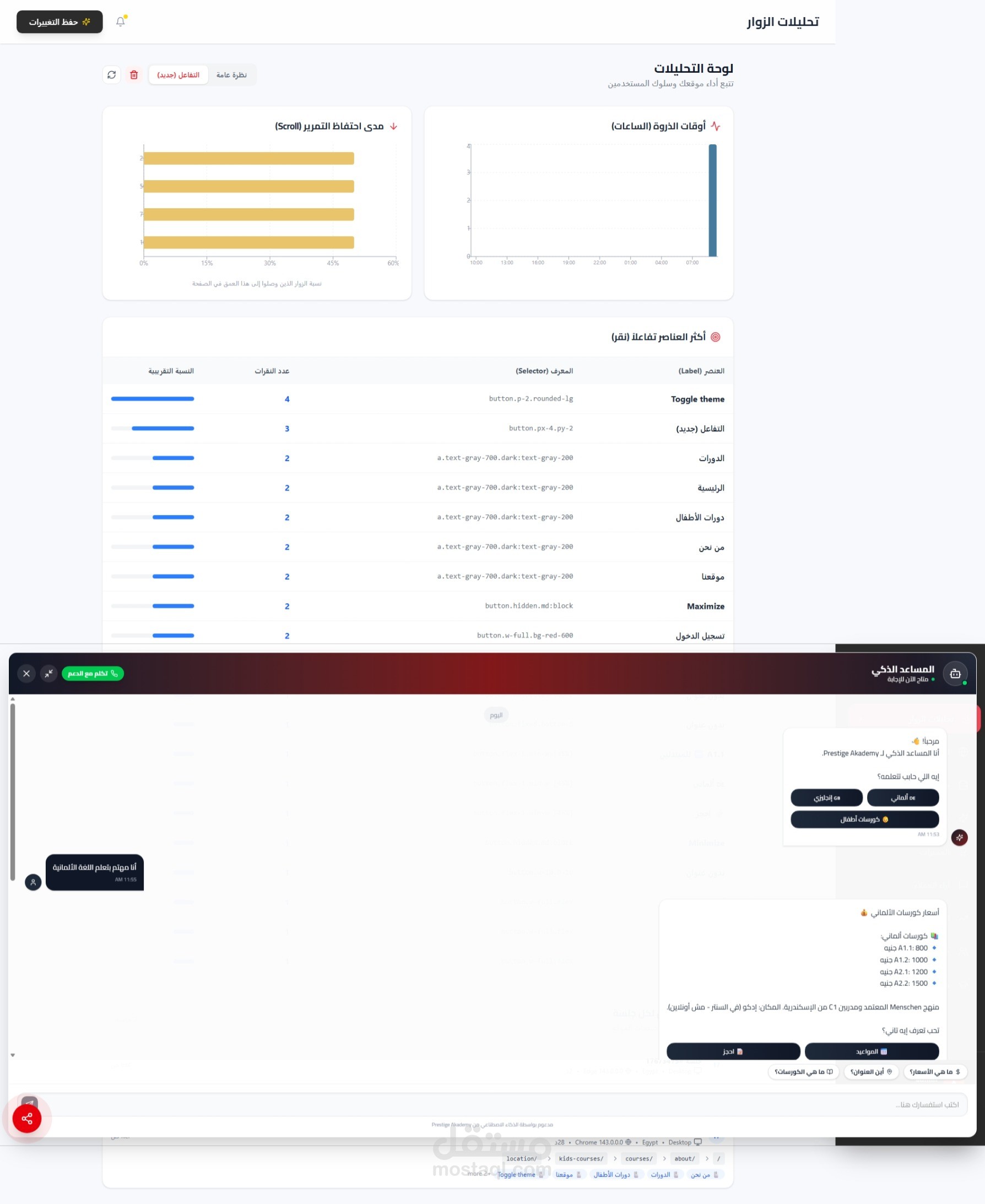 Granular Metrics: يقوم النظام بتتبع مقاييس دقيقة جداً لا توفرها الأدوات المجانية، مثل: خرائط حرارية لتفاعل المستخدم (Scroll Depth)، نوع الشبكة الفعلي (4G vs WiFi) لتحسين تحميل الميديا، وتتبع رحلة المستخدم (User Journey Journey) من الإعلان على فيسبوك وحتى إتمام التسجيل.