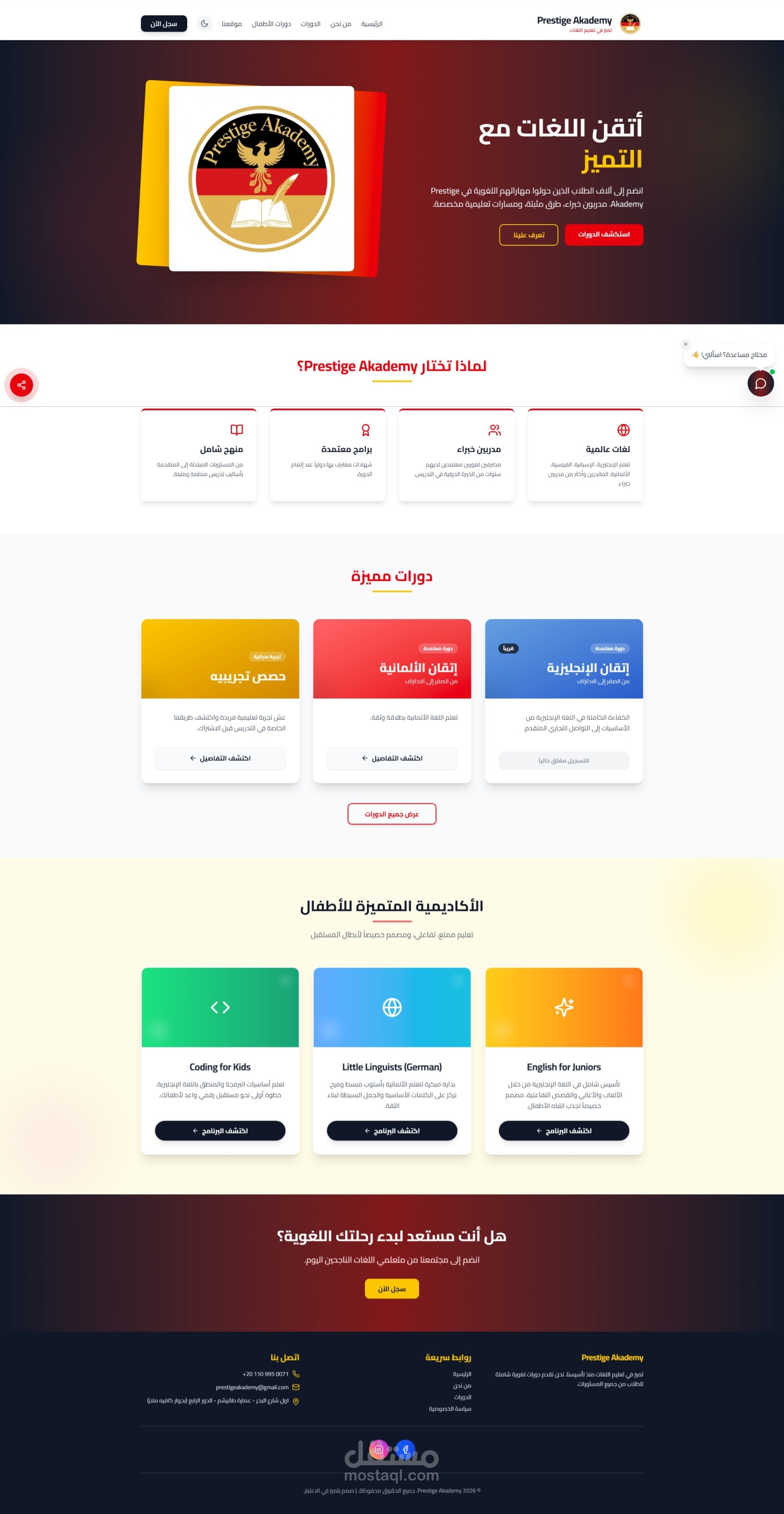Dynamic UX Engine: واجهة مستخدم تتكيف ديناميكياً مع الزائر. إذا اكتشف النظام (عبر الـ Analytics) أن الزائر مهتم بكورسات الأطفال، تتحول الواجهة بالكامل (Theme Injection) لألوان ورسوميات تناسب الأطفال، والعكس للكبار، مما يرفع معدل التحويل بشكل ملحوظ.