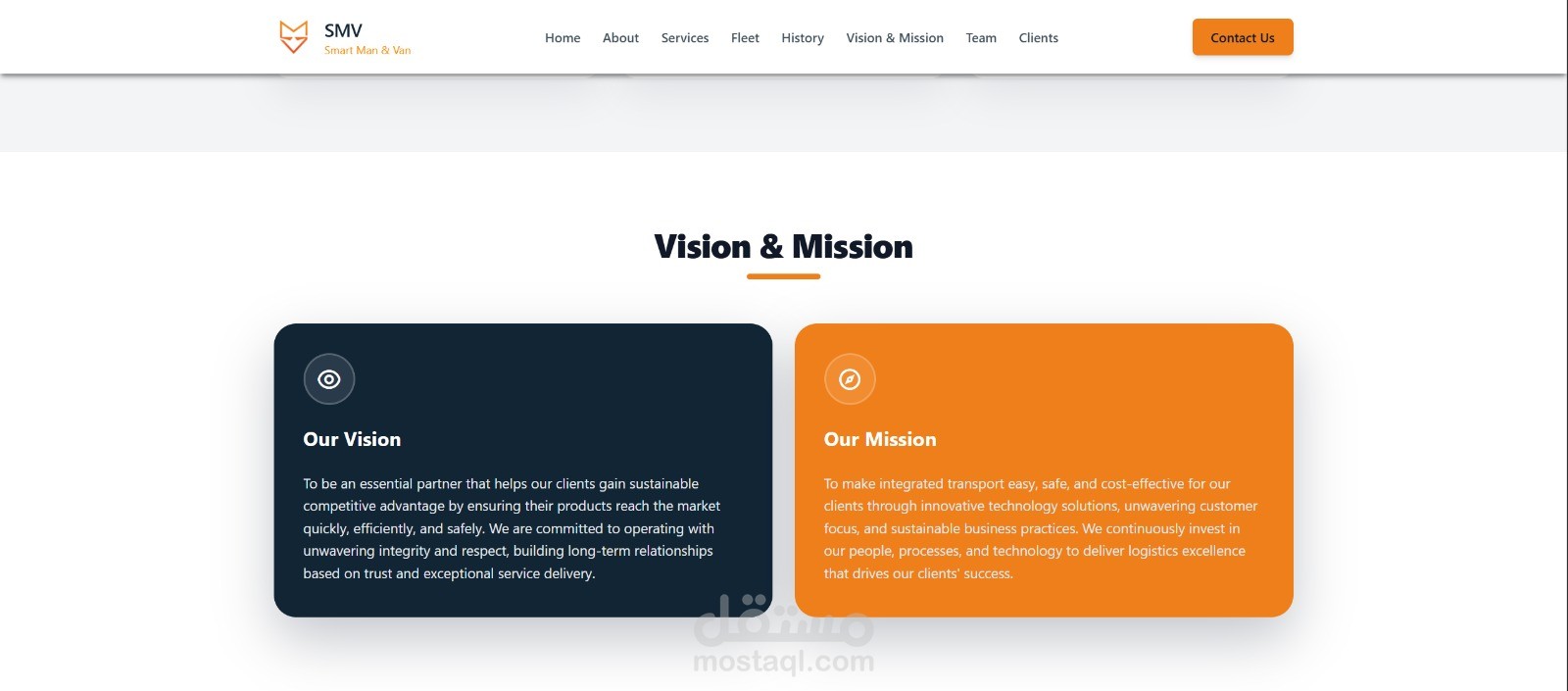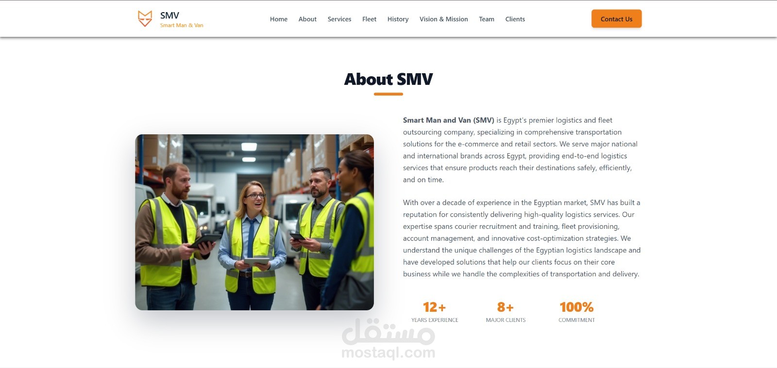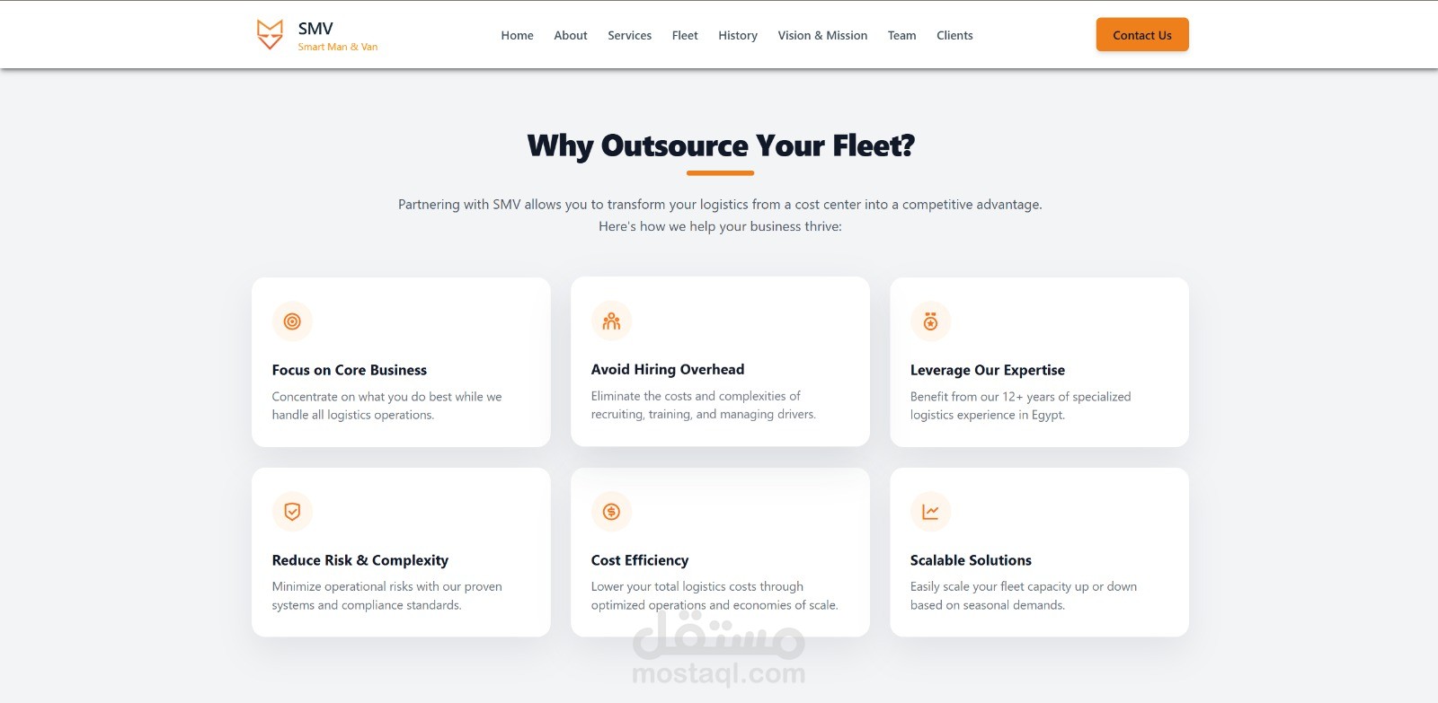 الموقع الرسمي لشركة SMV، الشريك الرائد في مصر لخدمات النقل وتعهيد الأساطيل (Fleet Outsourcing). تم تطوير المنصة لعرض حلول الشحن المتكاملة التي تقدمها الشركة لكبرى شركات التجارة الإلكترونية المحلية والدولية في جميع أنحاء مصر.