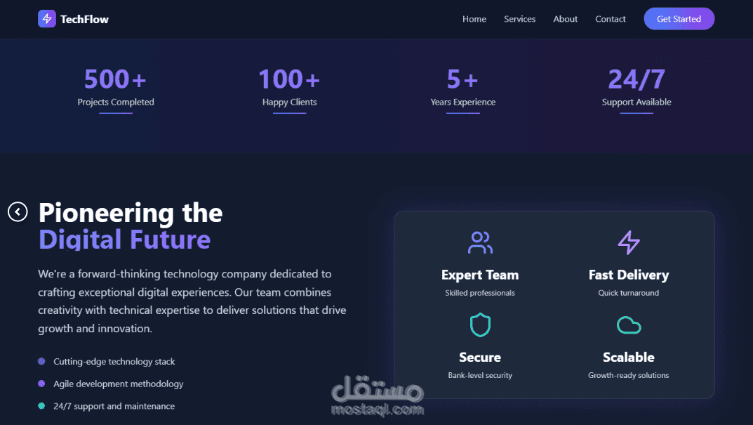 نحن في TechFlow نؤمن أن التكنولوجيا هي مفتاح النجاح في عالم سريع التغيّر. نُقدّم حلولًا رقمية متكاملة تجمع بين التصميم الإبداعي، الأداء العالي، والأمان المتقدم لمساعدة الشركات على النمو والتوسع بثبات.