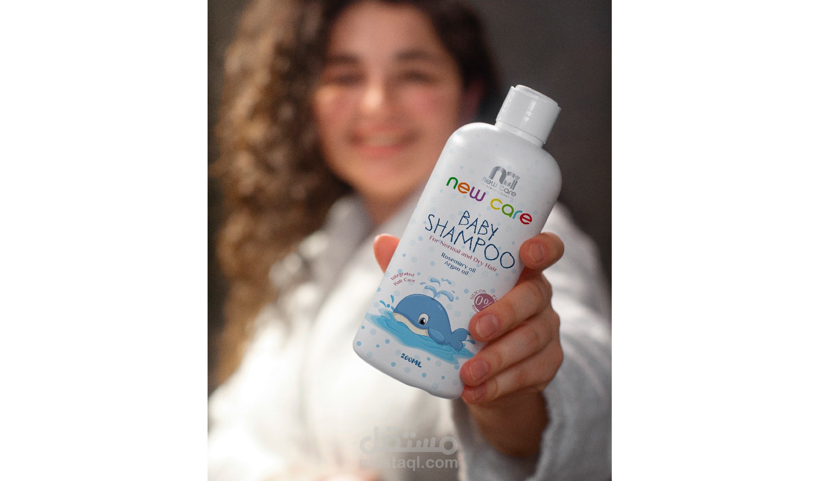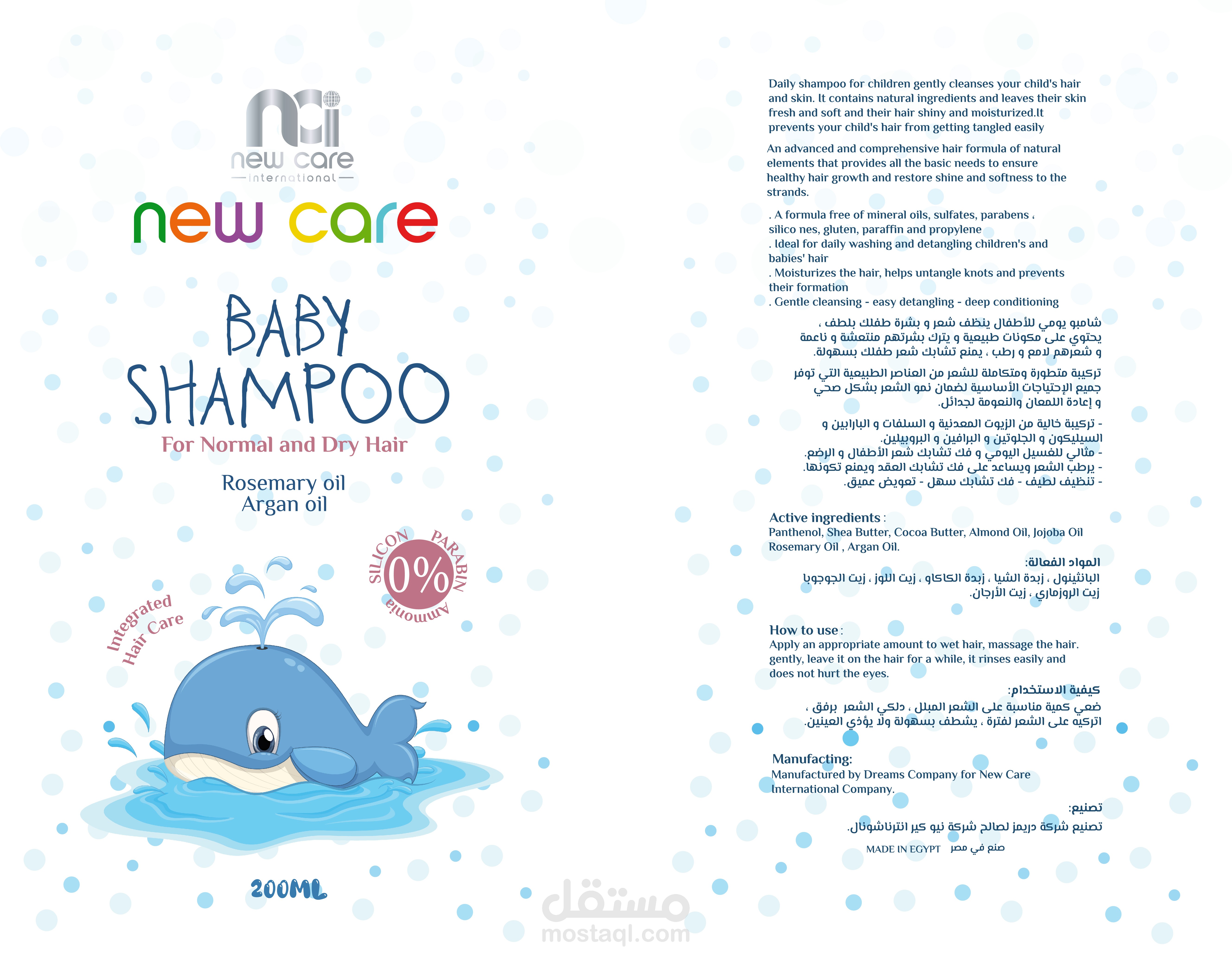 باستخدام صورة تناسب الأطفال و أيضًا لها علاقة بالمياه و باترن يعطي الإحساس بالشاور تم توليد التصميم مع التأكيد على المعلومات الهامة في وجه التصميم و باقي البيانات تم تنسيقها في ظهر العبوة.