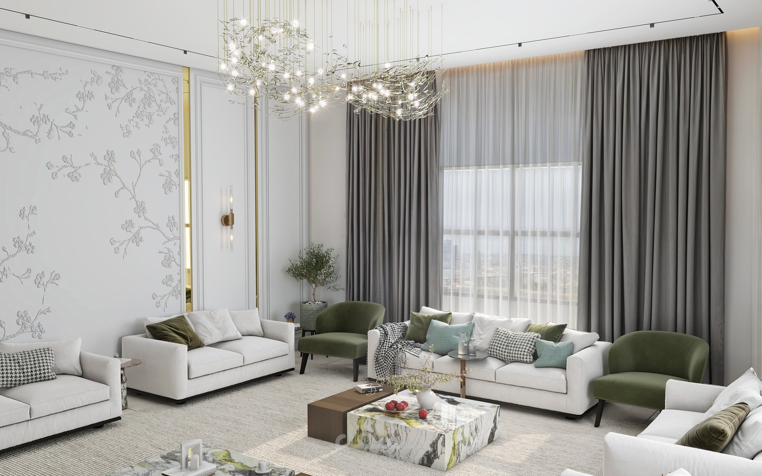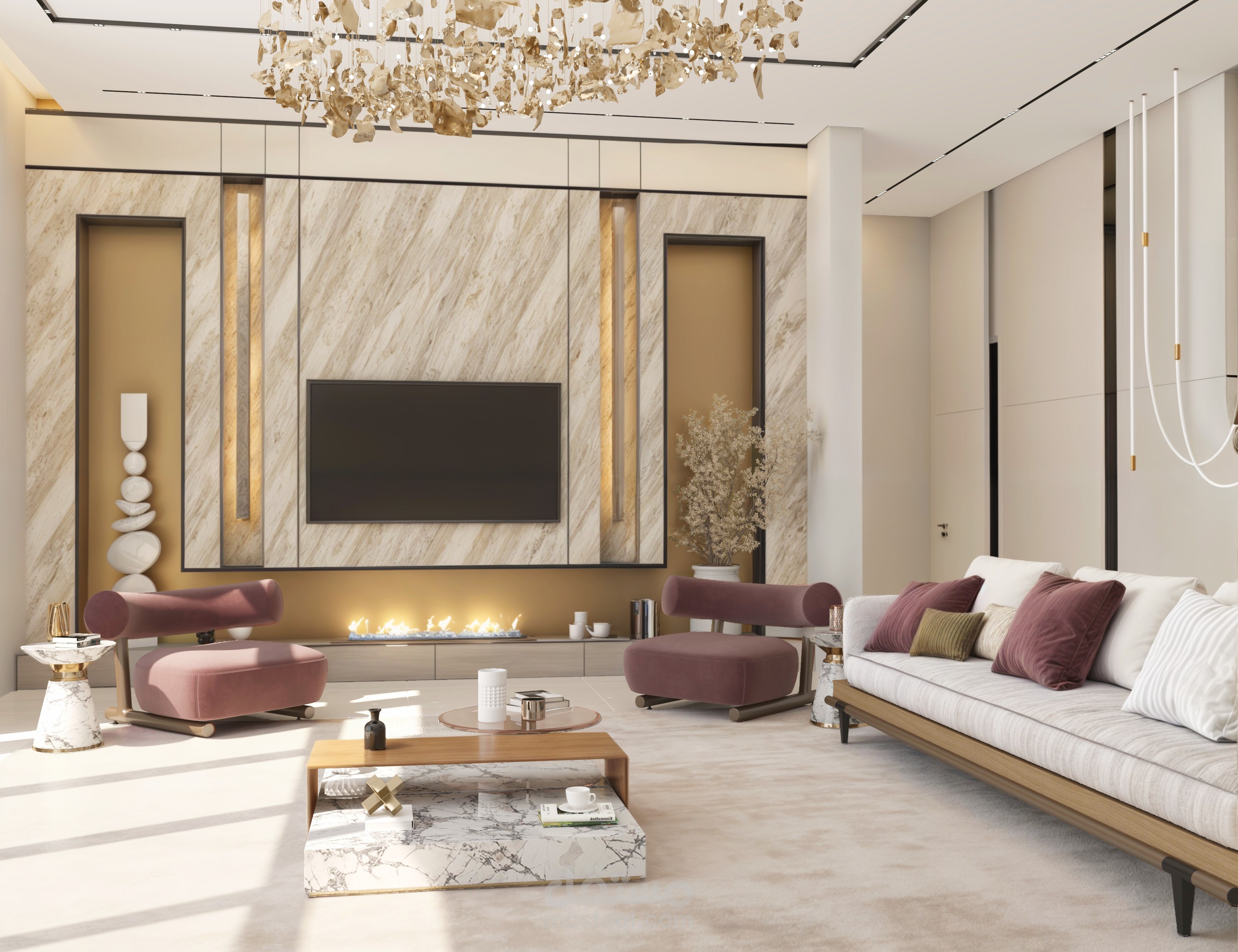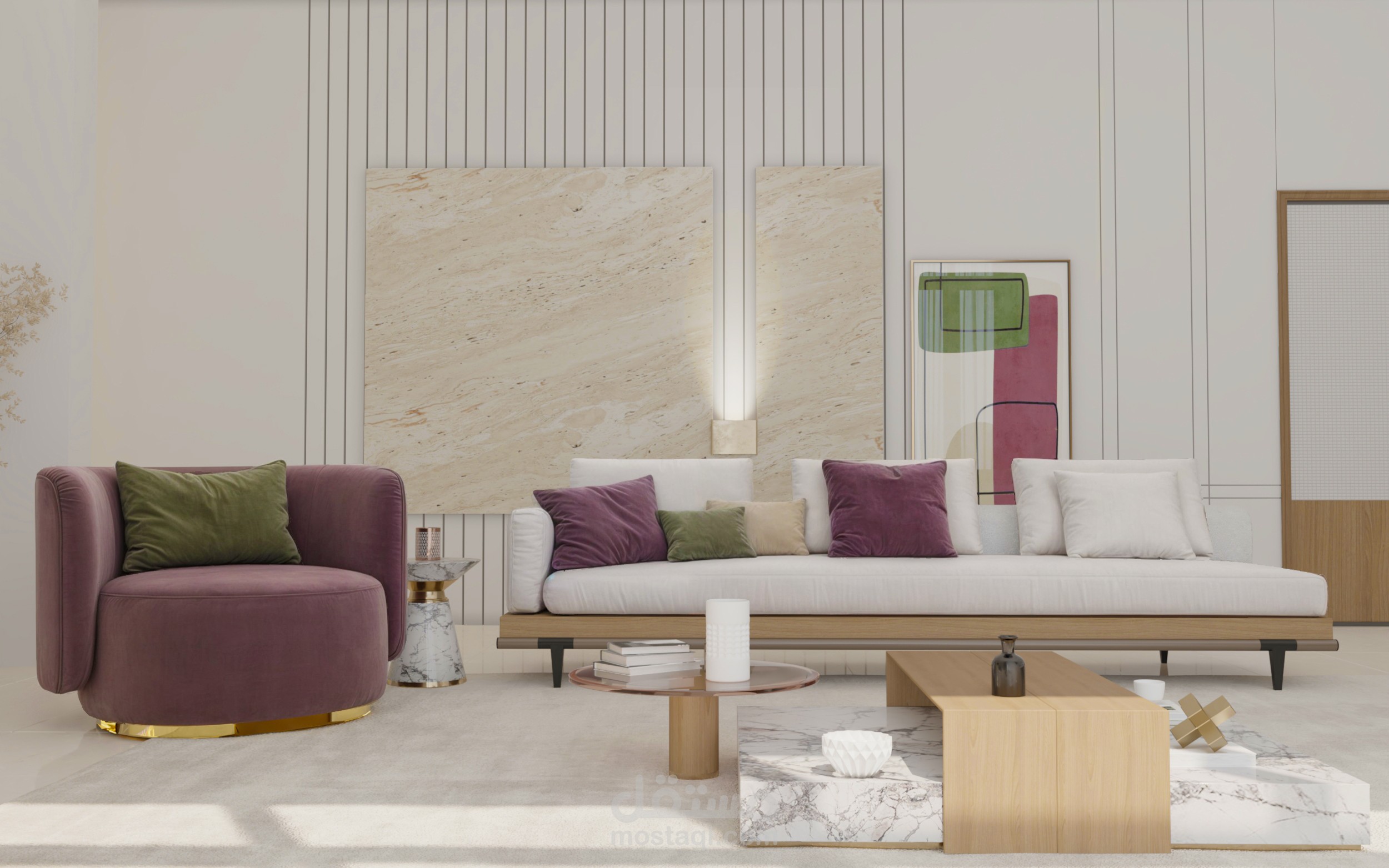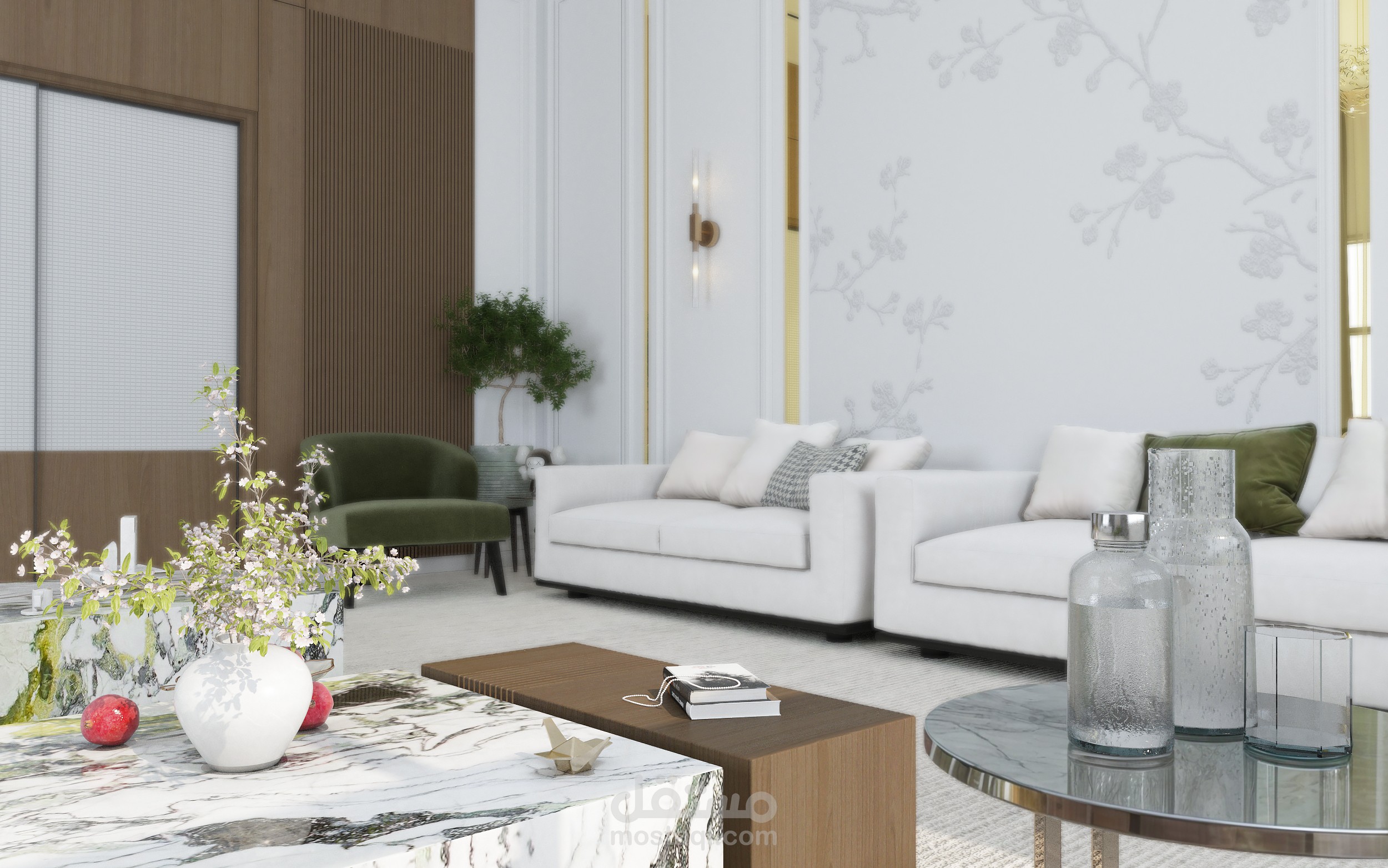 التصميم يعكس اهتمامًا واضحًا بـ التفاصيل، النِسَب، وتناسق الخامات، مع مراعاة سهولة الحركة ومرونة الاستخدام، ليكون الفراغ مناسبًا للاستخدام اليومي والاستقبال في آنٍ واحد.