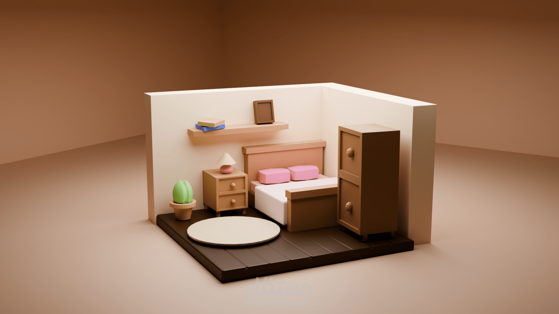 Designed and modeled in Blender using self-learned techniques from online tutorials, focusing on a cozy and clean cartoon style.