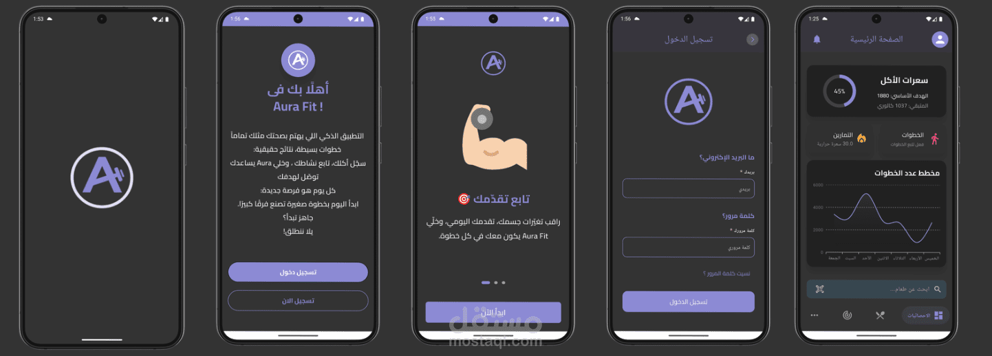يتضمن AuraFit مدربًا افتراضيًا (AI Coach) للتوجيه والتحفيز، وواجهة حديثة وسهلة الاستخدام، مع دعم التكامل مع بيانات الصحة لتجربة شاملة تساعد المستخدم على الالتزام وتحقيق نتائجه بثقة.