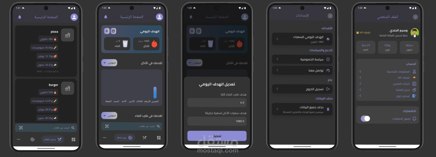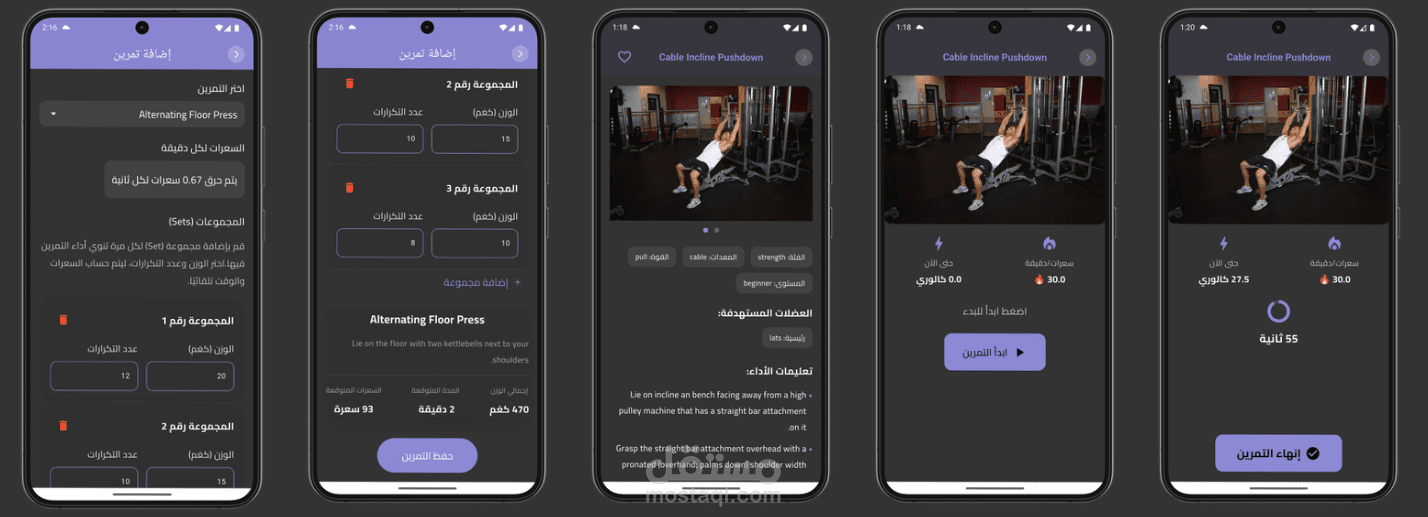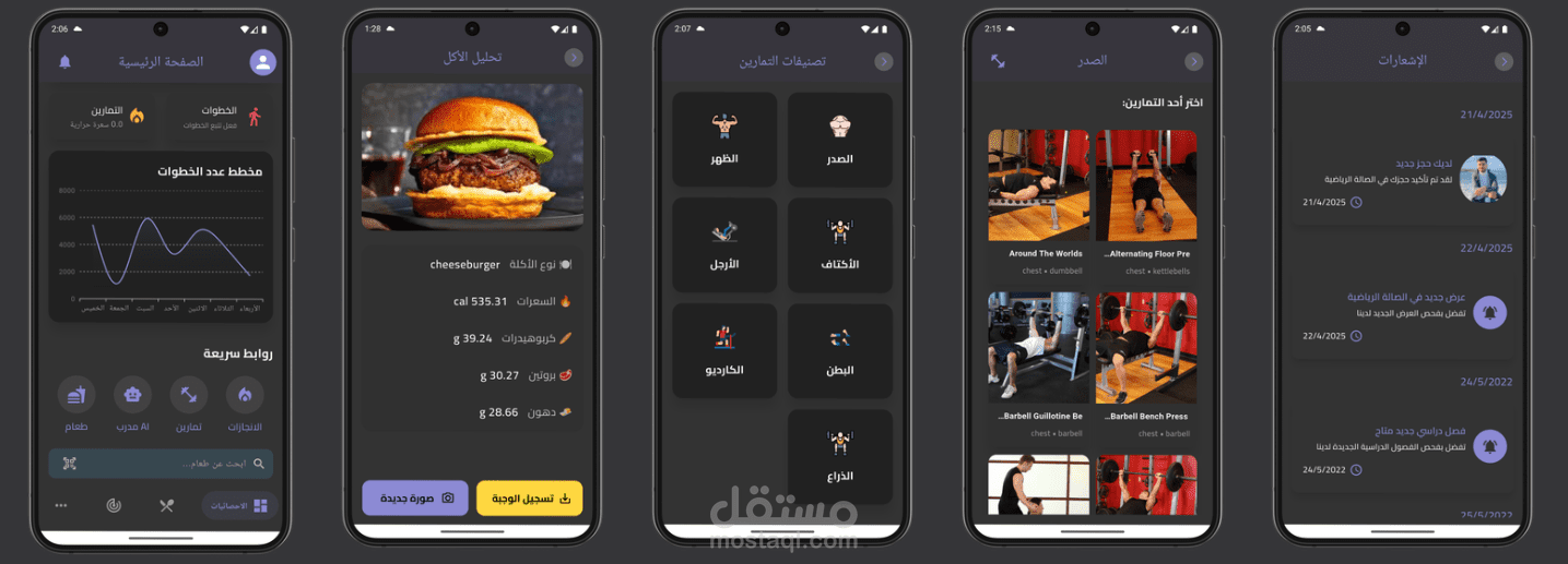 يوفّر التطبيق خطط تمارين وتغذية مخصّصة حسب هدف المستخدم، مع تتبع السعرات الحرارية والنشاط اليومي، وتحليل التقدم بشكل ذكي.