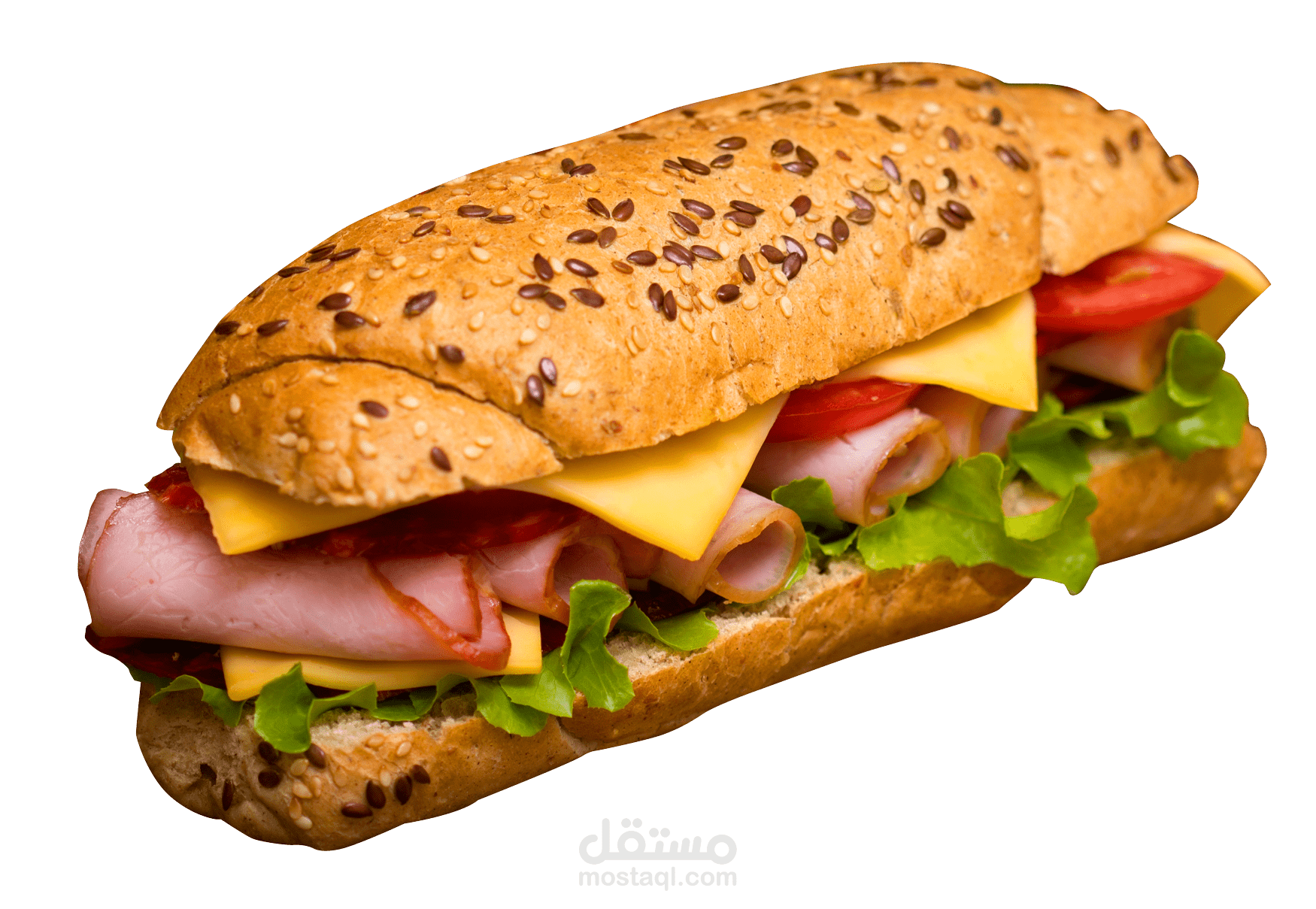 وضع السندويتش في مقدمة التصميم مع قصّ احترافي وإضافة ظل خفيف لخلق إحساس ثلاثي الأبعاد.