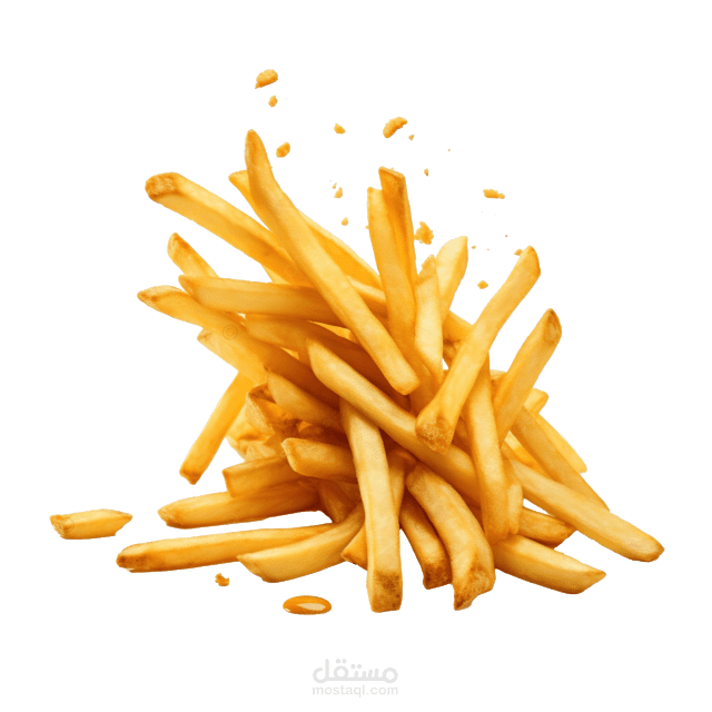 إضافة البطاطس والمشروب كعناصر داعمة لإيصال فكرة الوجبة الكاملة.