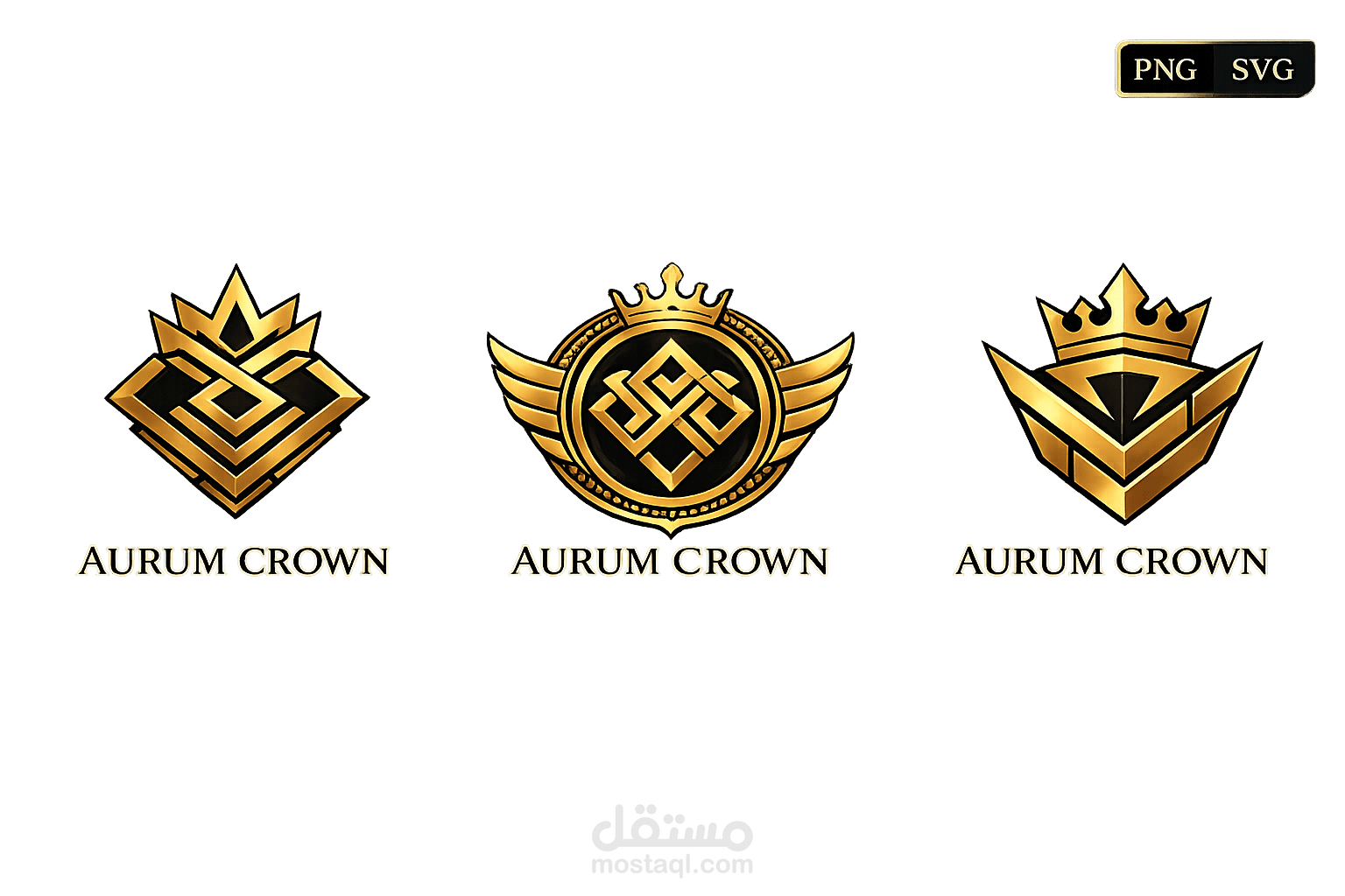 • شكل زاوي أنيق يجمع بين خطوط V وتاج ملكي بارز.