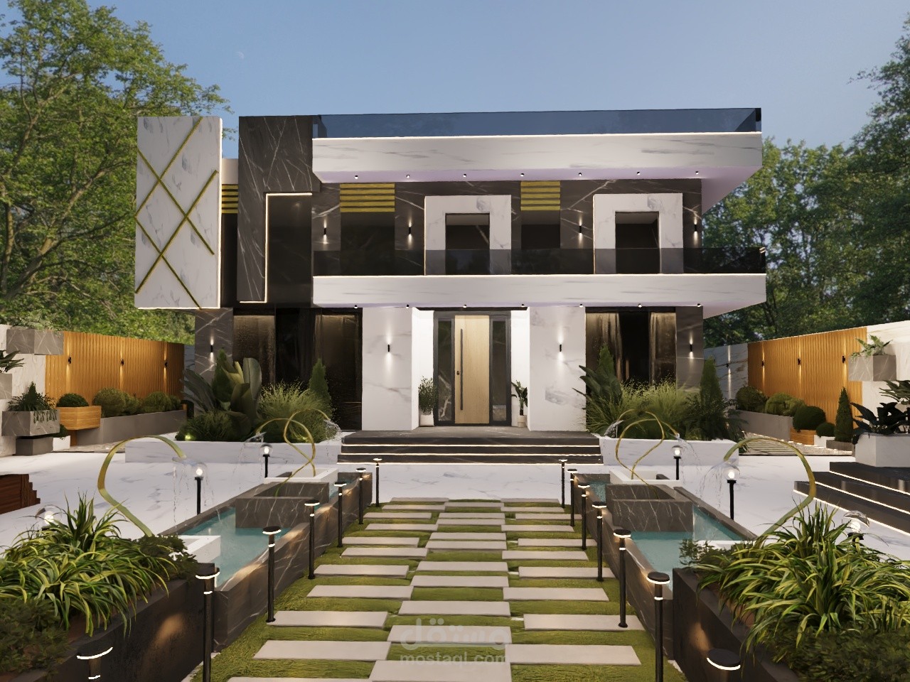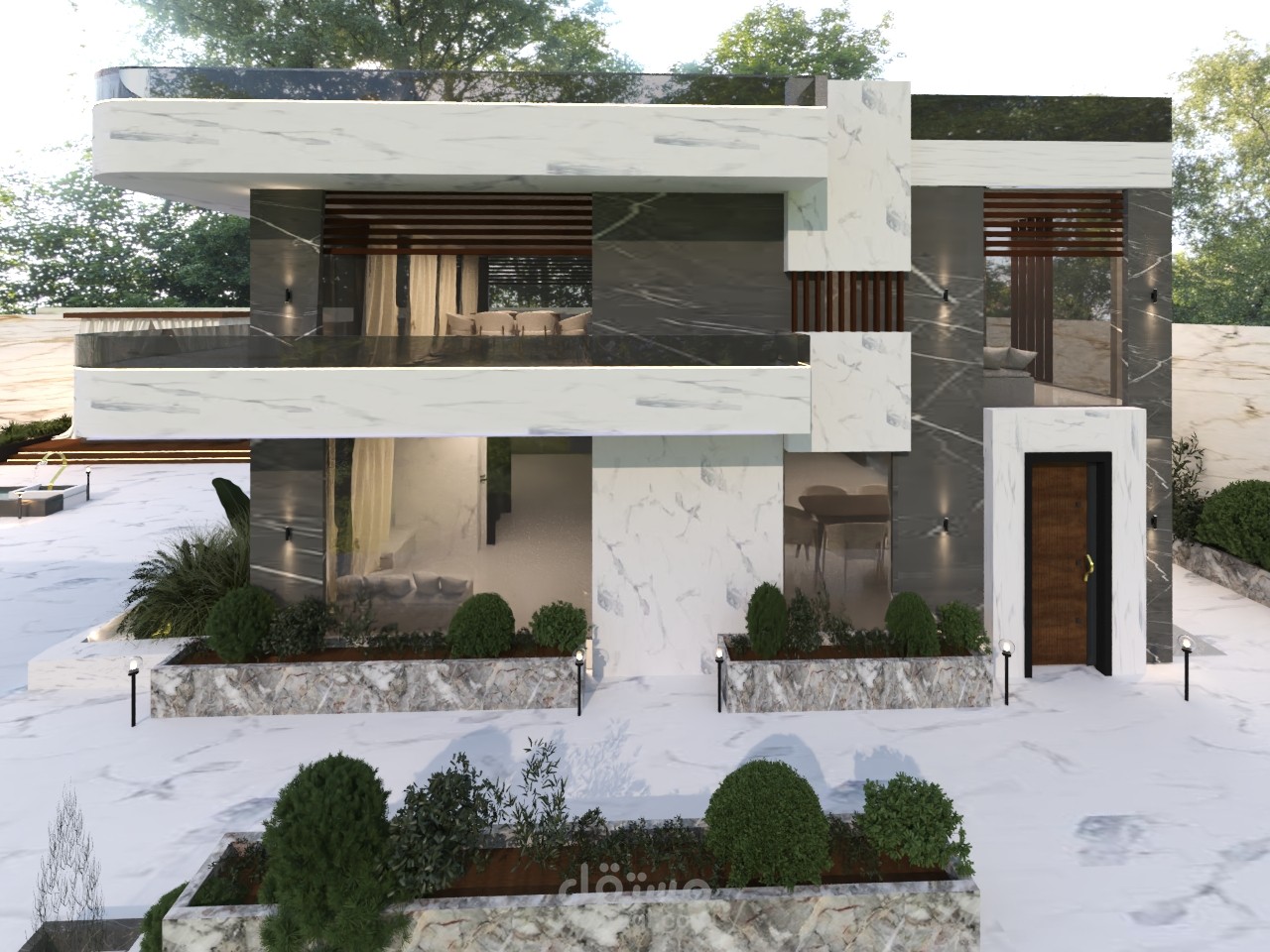 فيلا سكنية مؤلفة من طابقين مع مسبح داخلي مع دوش للاستحمام مع صالة استقبال مع مطبخ الدور الثاني غرفة نوم ماستر غرفة نوم اولاد مع مطبخ مع صالة مفتوحة