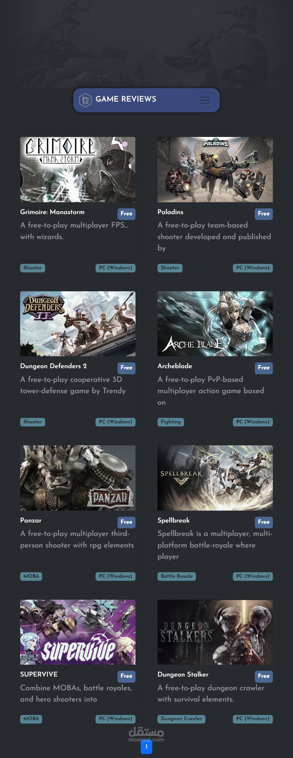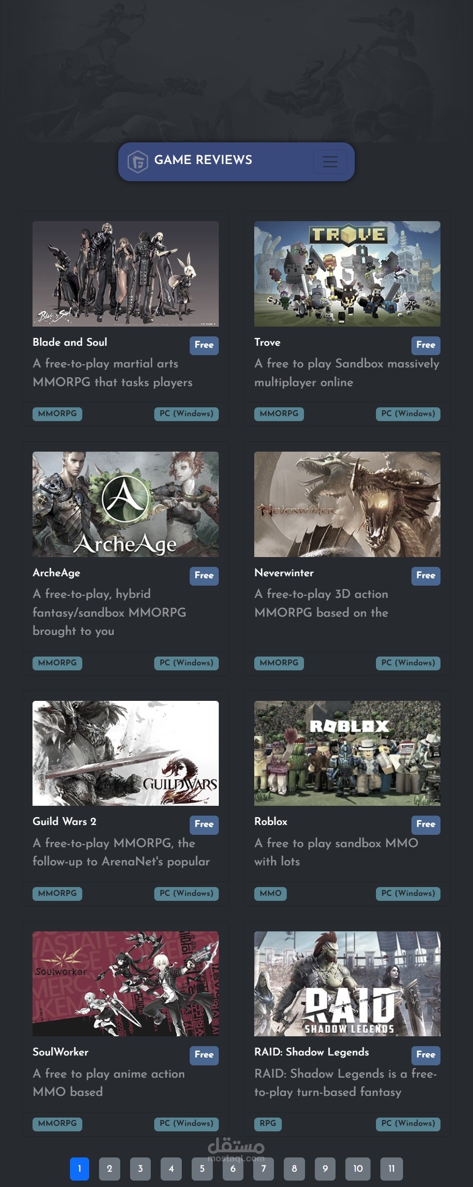 - عرض الألعاب مع نظام التنقل عبر الصفحات (Pagination) لتسهيل تصفح محتوى كبير.