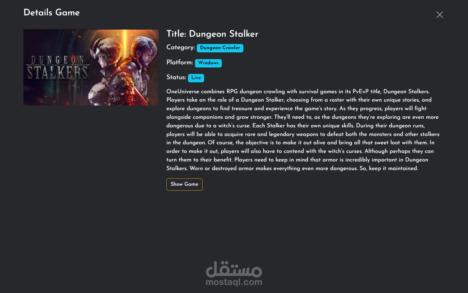 - عرض معلومات مفصلة لكل لعبة تشمل الوصف، الصور، والتصنيفات.