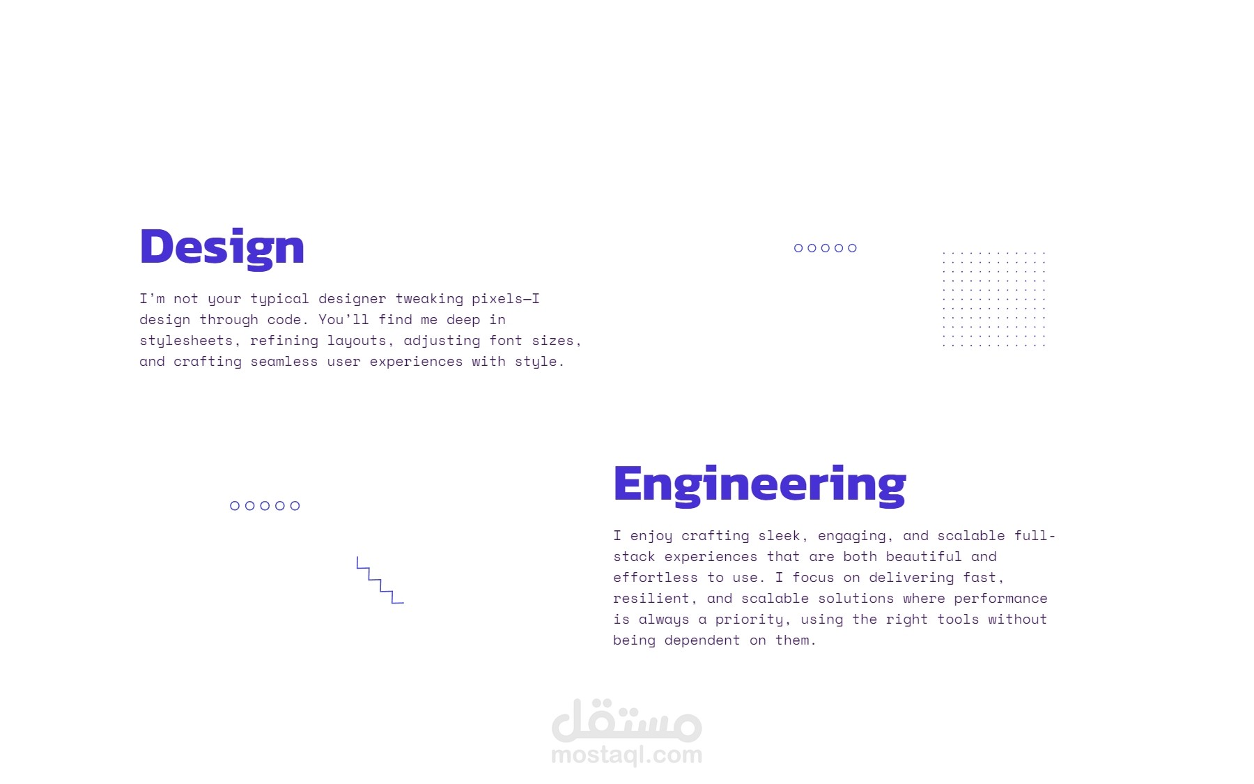 أركز على تقديم حلول ويب عملية، سريعة، وعصرية تناسب العملاء الباحثين عن تجربة مستخدم ممتازة وتصميم محترف.