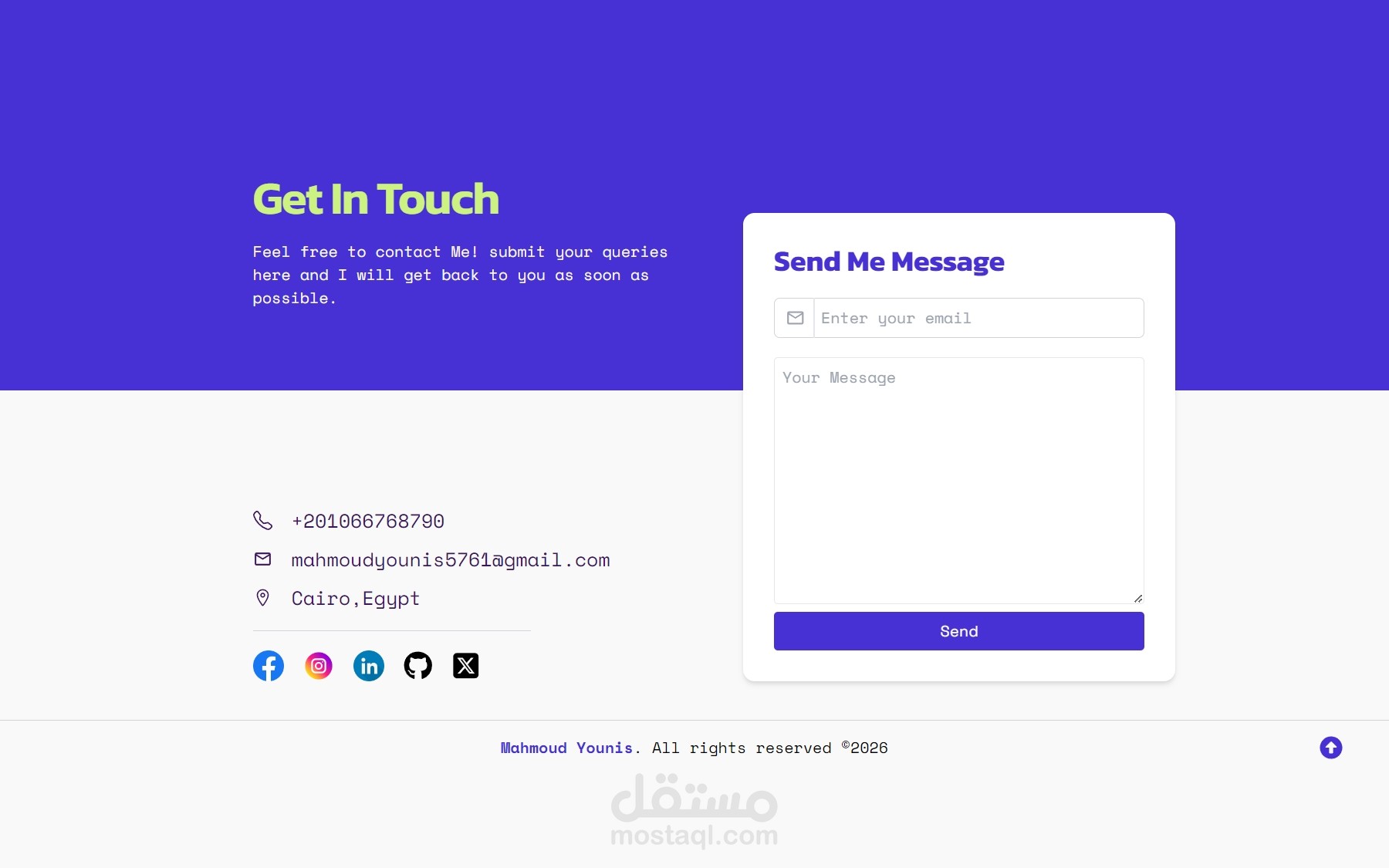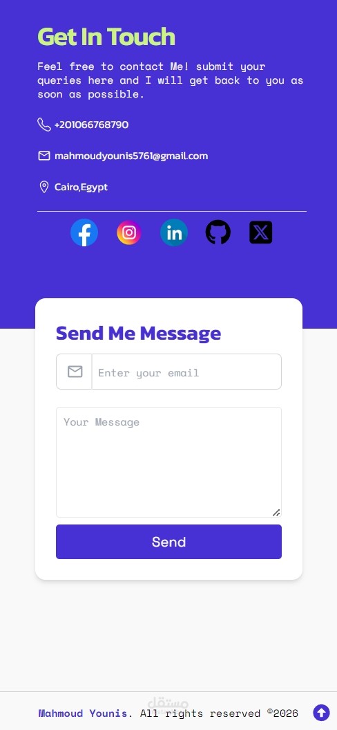 السلام عليكم، أنا مطور ويب متكامل متخصص في بناء تطبيقات ومواقع عملية Responsive وسهلة الاستخدام باستخدام React.js – Next.js – Node.js – Express – MongoDB.