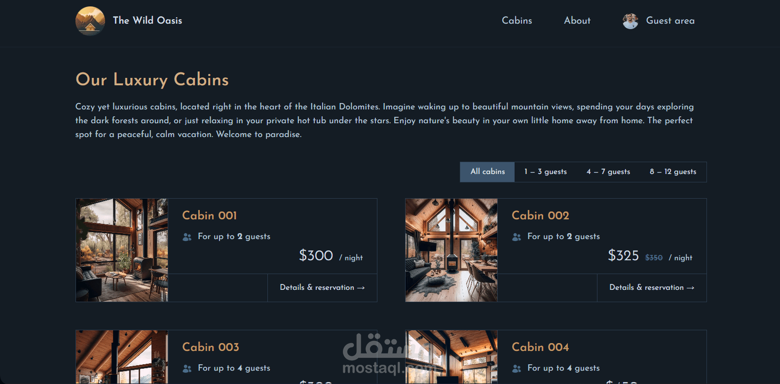 موقع ويب احترافي لإدارة وحجز الإقامات في منتجع سياحي، يتيح للمستخدمين استعراض الغرف المتاحة، الاطلاع على التفاصيل والأسعار، وإجراء الحجوزات بسهولة. يتميز الموقع بتجربة مستخدم سلسة وتصميم حديث متجاوب مع جميع الأجهزة، مع نظام لإدارة الحجوزات والمستخدمين بكفاءة عالية.