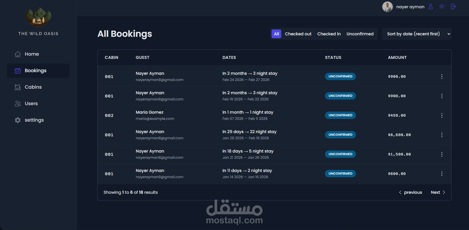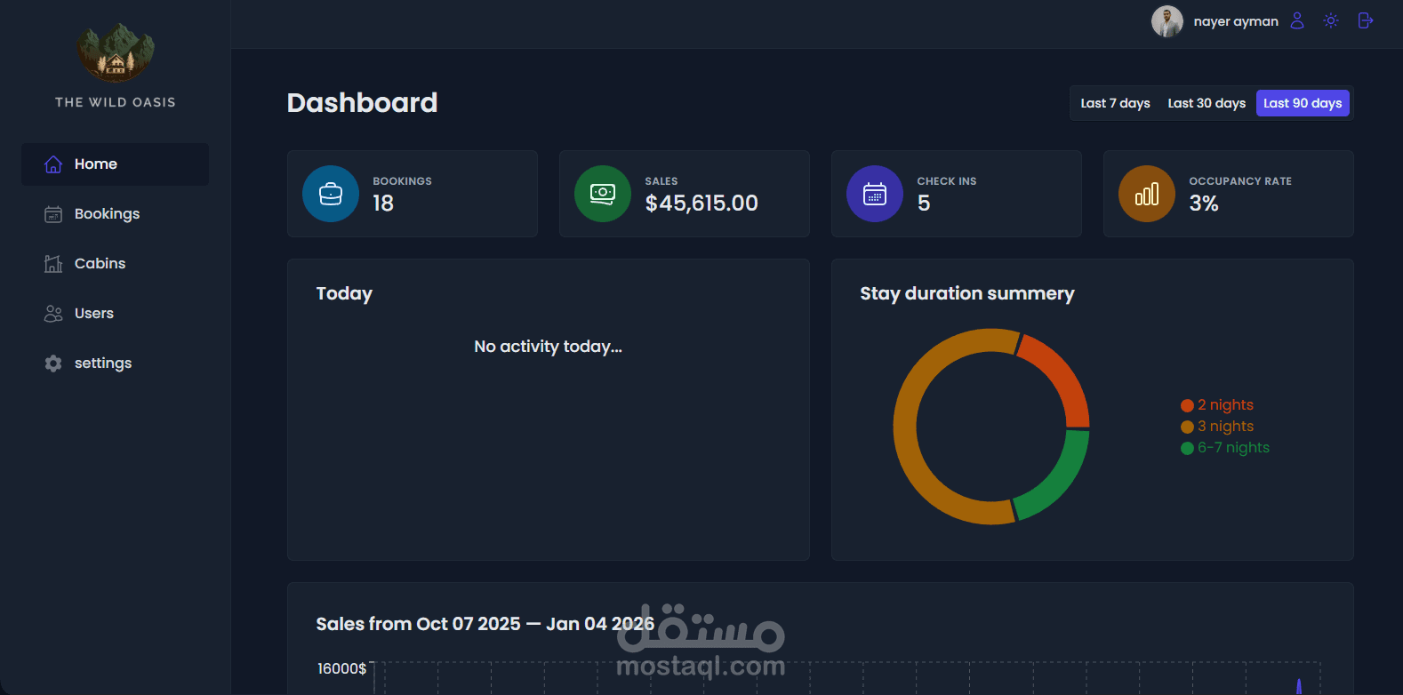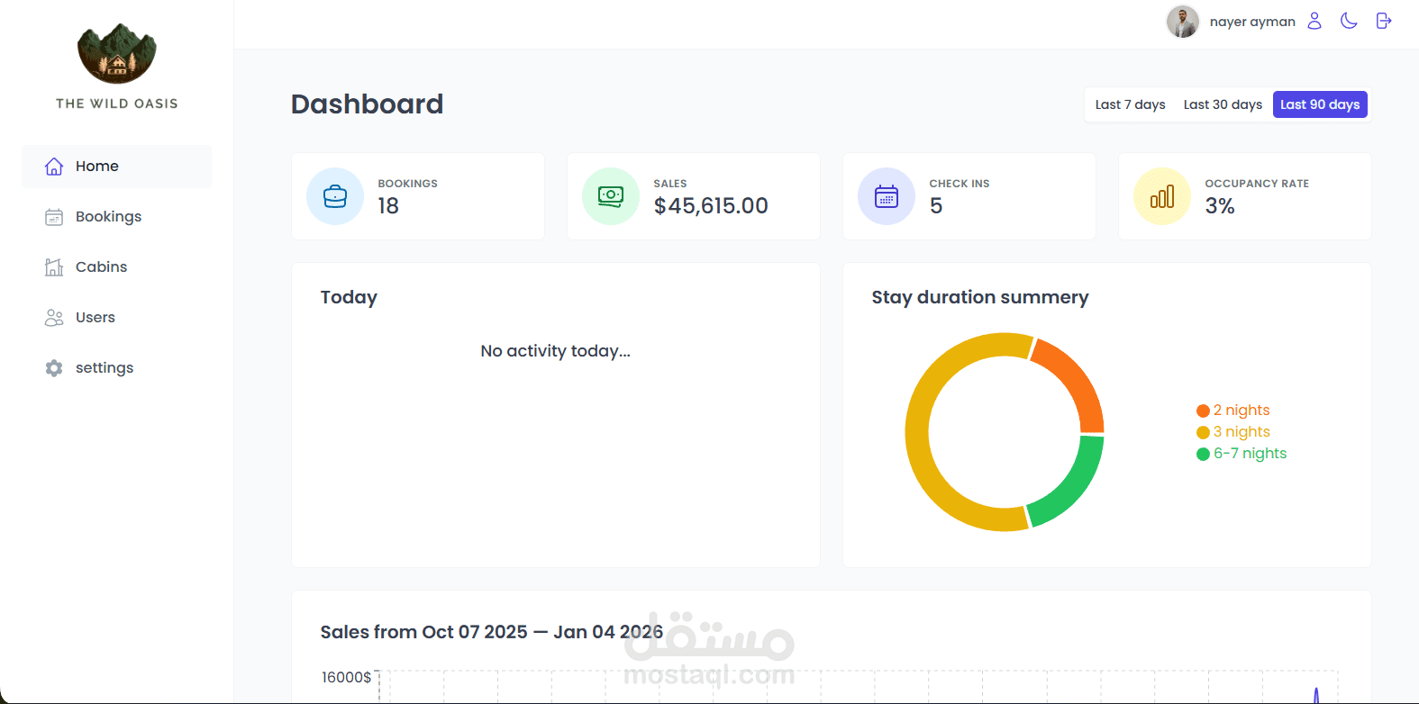 The Wild Oasis Dashboard – لوحة تحكم لإدارة منتجع سياحي
