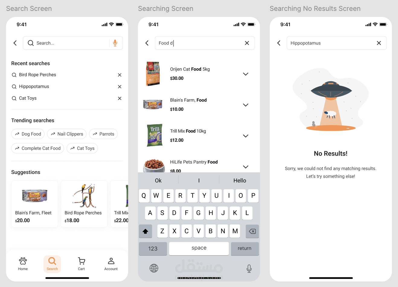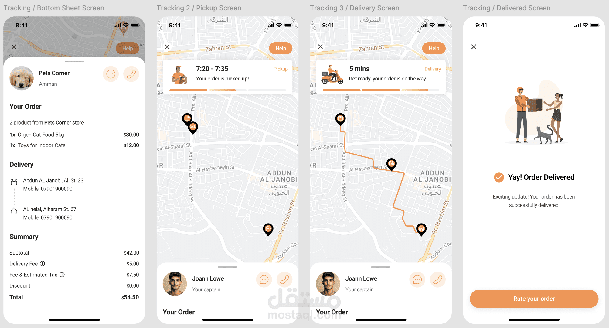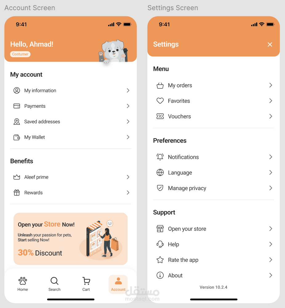 Personalization is key on the Profile Screen. Users can manage account details, track order history, and customize preferences. With the ability to set up profiles for multiple pets, Aleef ensures a tailored experience for each furry friend.