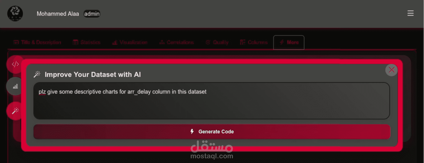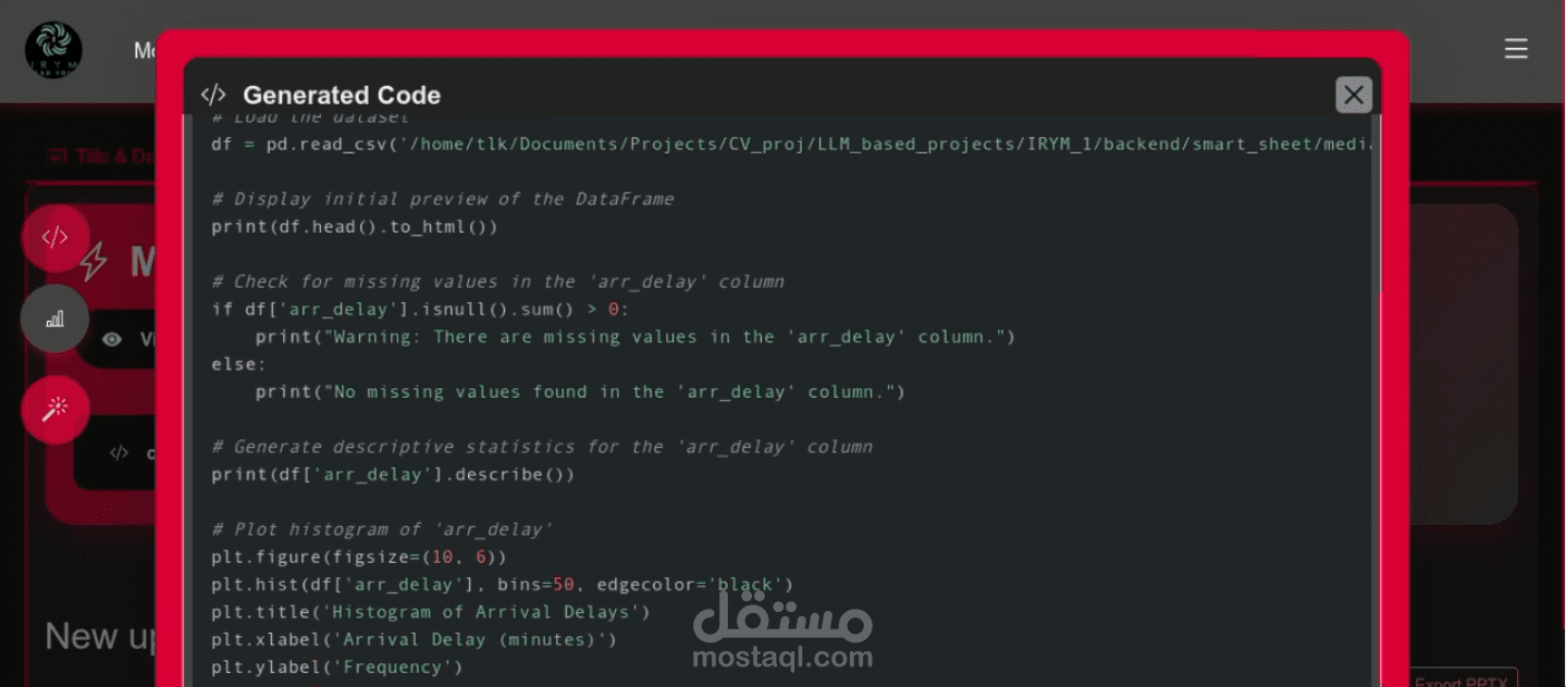 SmartSheet (IRYM 1) is a web-based platform that allows users to upload datasets (CSV, Excel, JSON) and describe in natural language prompts the type of analysis they want.