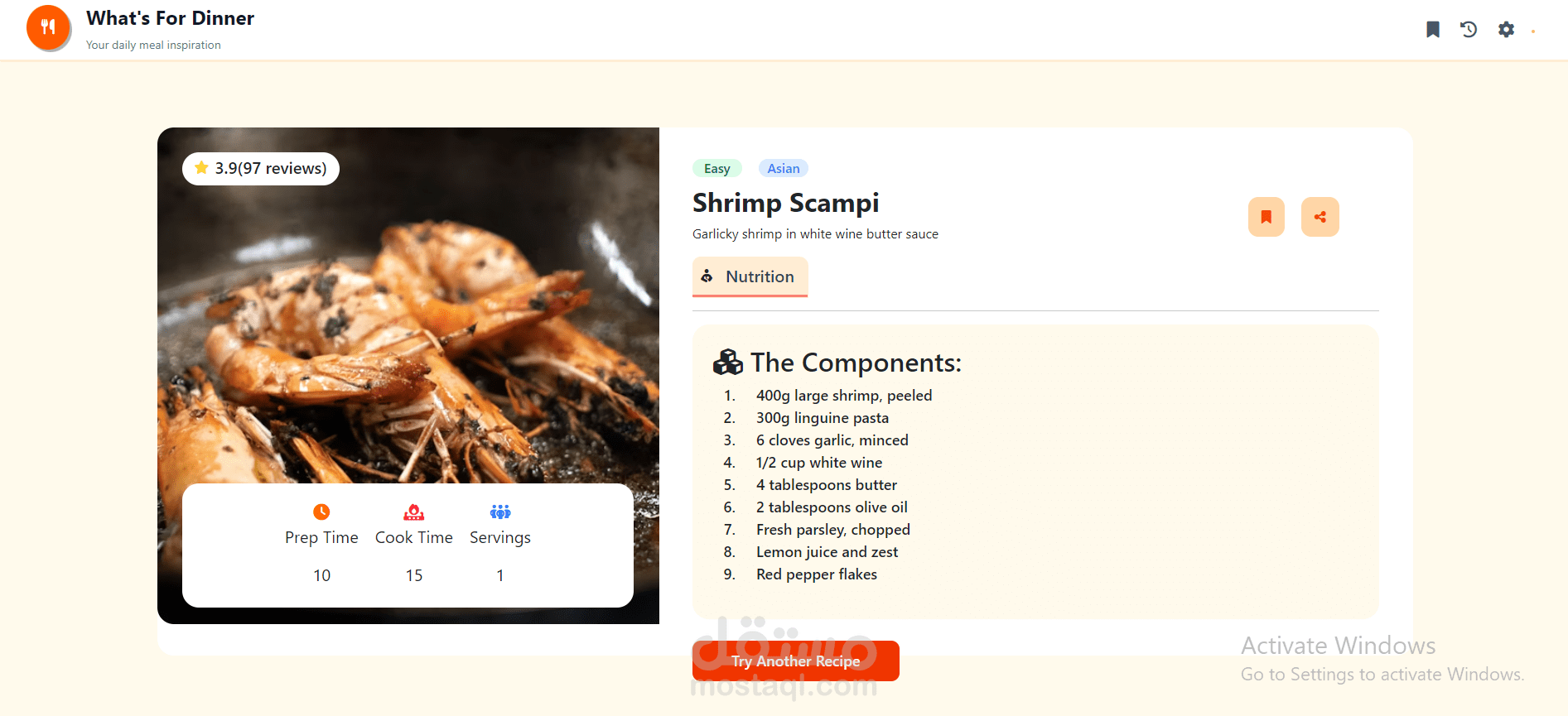 الويب سايت معمول للمساعده في اختيار عدد من اطعمه عل مدار الاسبوع