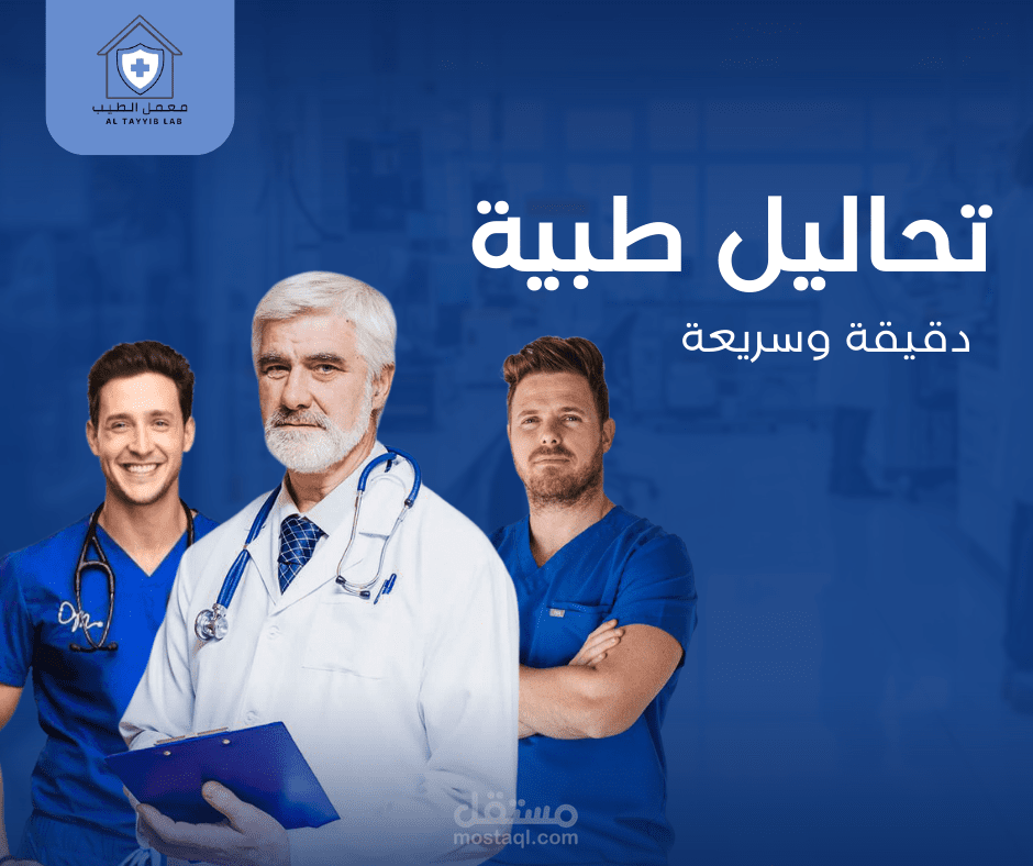 الاعتماد على اللون الأزرق كلون أساسي لما يحمله من دلالة على الثقة والاحتراف في المجال الطبي