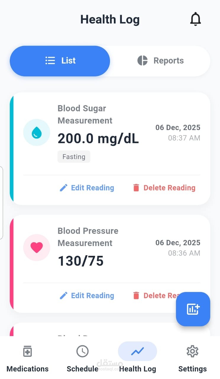 A patient-centric mobile application designed to assist users in managing their medication schedules and monitoring vital health metrics. The app features interactive charts for tracking blood pressure and glucose levels. Key Technical Highlights: