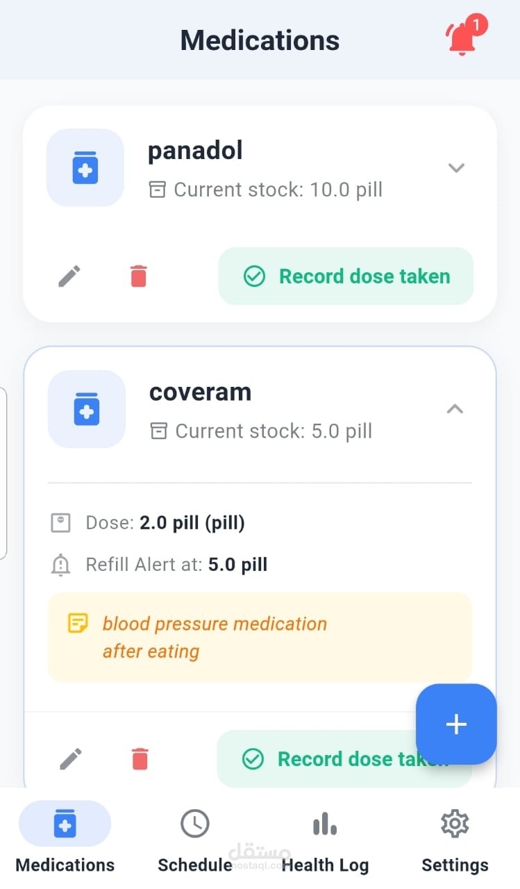 Inventory Management: Logic to track medication stock and alert users when refills are needed.