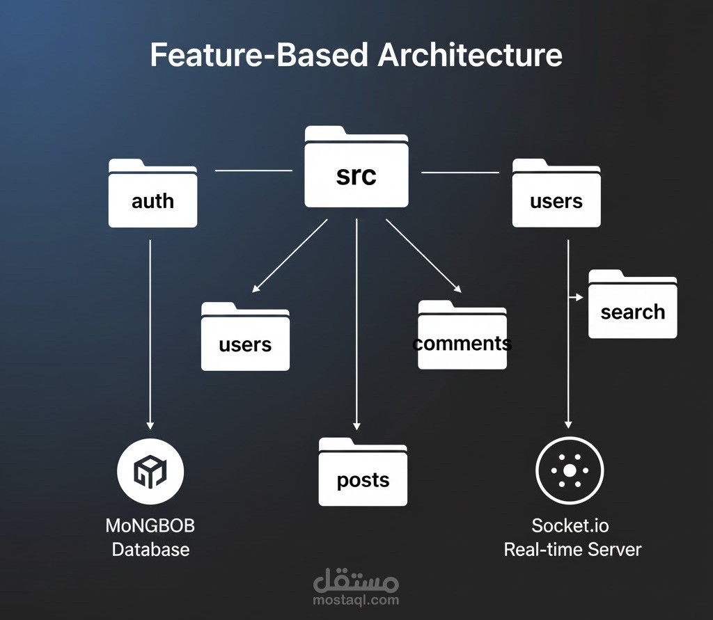 تم تطوير المشروع باستخدام Node.js وExpress.js وMongoDB مع هيكلة نظيفة تعتمد على Feature-Based Architecture، مع التركيز على الأمان، الأداء، وسهولة التطوير المستقبلي.