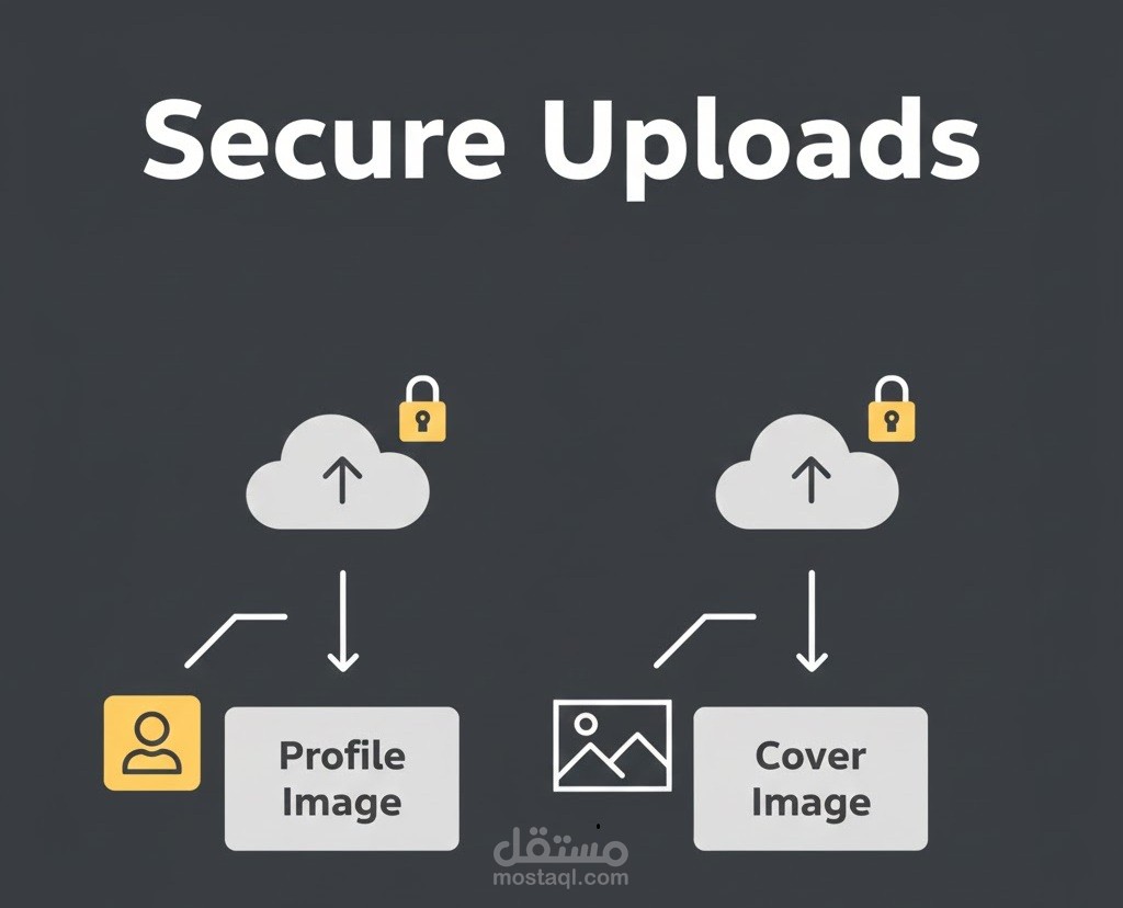 حسابات المستخدمين والملفات الشخصية: إدارة البيانات الشخصية، رفع صور الملف الشخصي والغلاف، تجميد/استرجاع/حذف الحسابات، مشاركة الحساب، والبحث عن المستخدمين.
