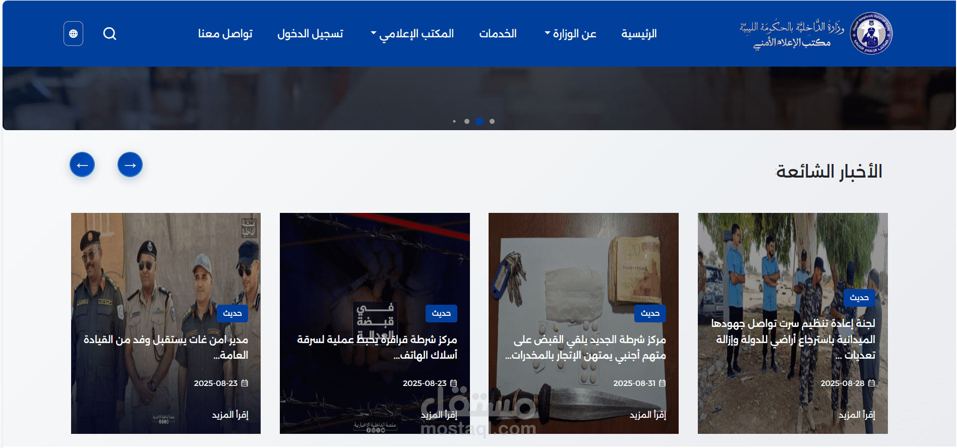 The Ministry of Interior – Libya Portal is a government web platform designed to provide citizens and residents with easy access to official information and digital services. The system focuses on delivering a modern and user-friendly interface, ensuring accessibility in both Arabic and English.