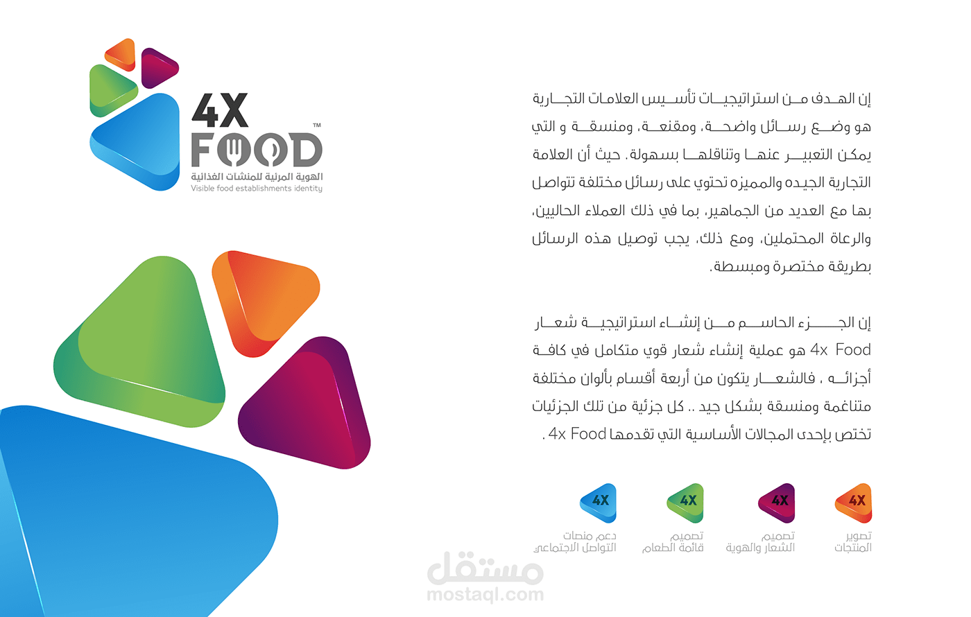الهوية البصرية لشركة 4X Food شركة سعودية تهتم بتكوين الهوية المرئية للمنشئات الغذائية (مطاعم، مقاهي، شركات تغذية وغيرها أربعة مجالات أساسية : - تصوير المنتجات . - تصميم الشعار والهوية . - تصميم قائمة الطعام . - دعم منصات التواصل الاجتماعي .
