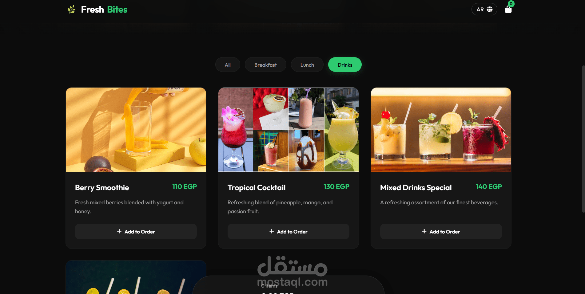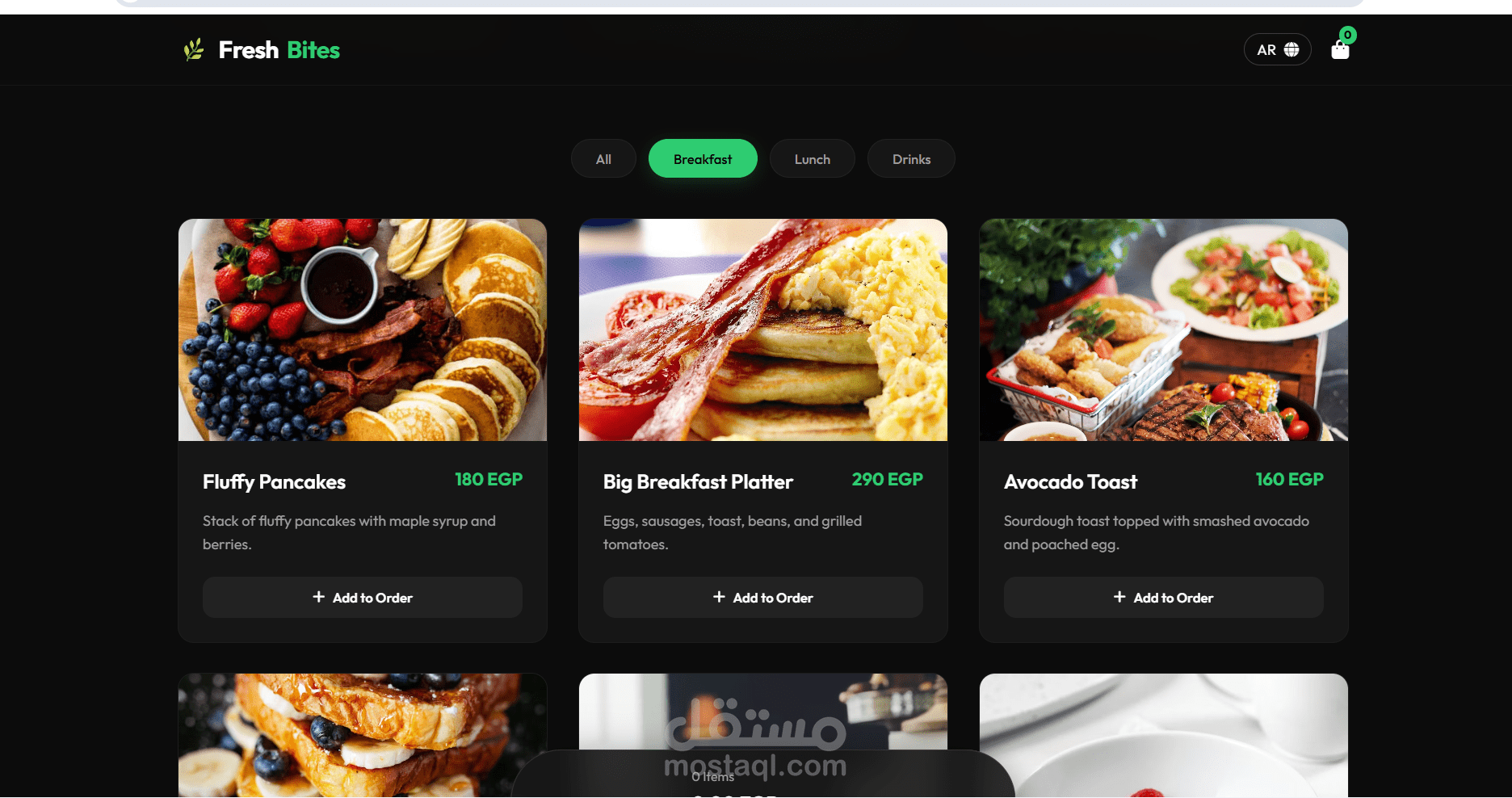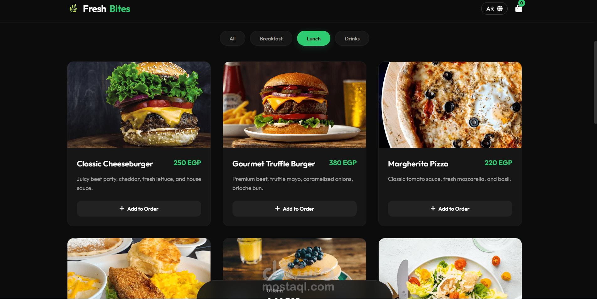 في عالم المطاعم، السرعة والسهولة هما مفتاح جذب العميل. في هذا المشروع، قمت بتطوير Fresh Bites، وهي تجربة مستخدم متكاملة تهدف إلى تحويل الزوار إلى زبائن في ثوانٍ معدودة."