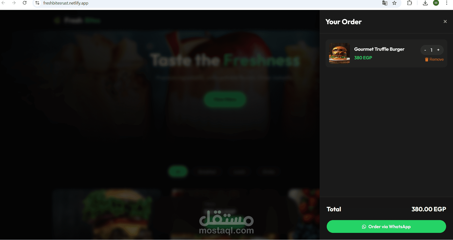 ما الذي يقدمه هذا المشروع؟ قمت ببناء هذا الموقع ليكون واجهة عصرية وسريعة لأي مطعم أو مشروع مأكولات، مع التركيز على تجربة المستخدم (UX) وسهولة إتمام الطلب.
