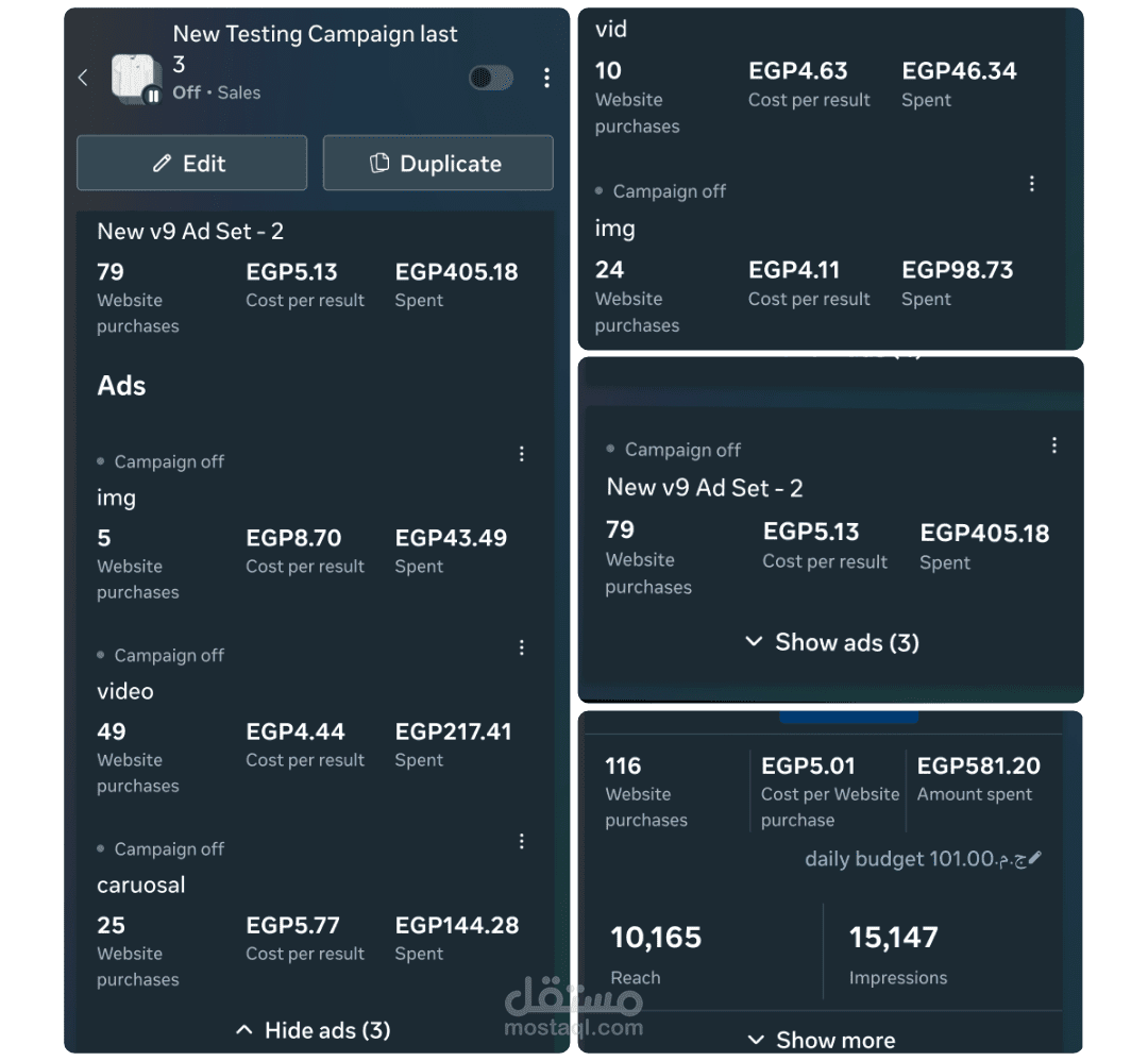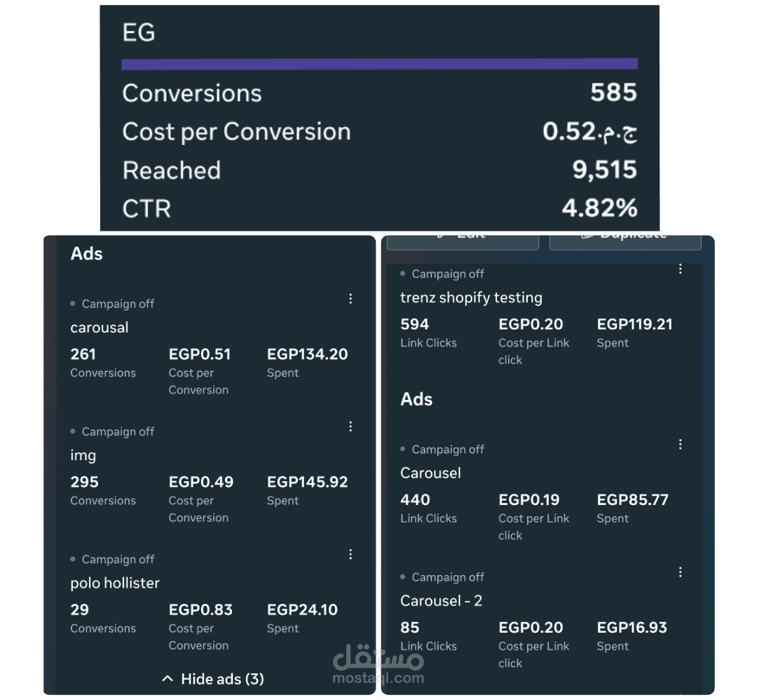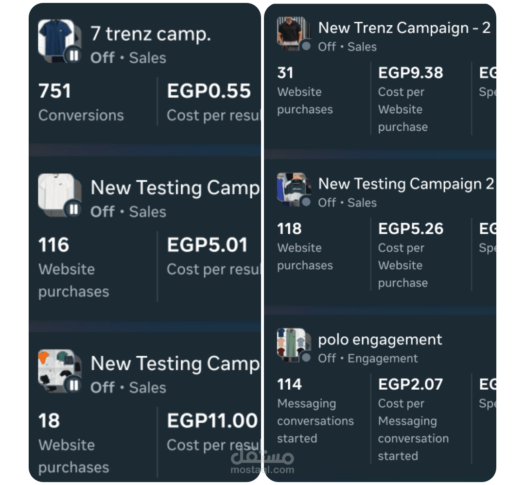 "الأرقام لا تكذب".. الصور المرفقة توضح كفاءة الحملات من داخل مدير الإعلانات (Ads Manager). ستلاحظ في النتائج: