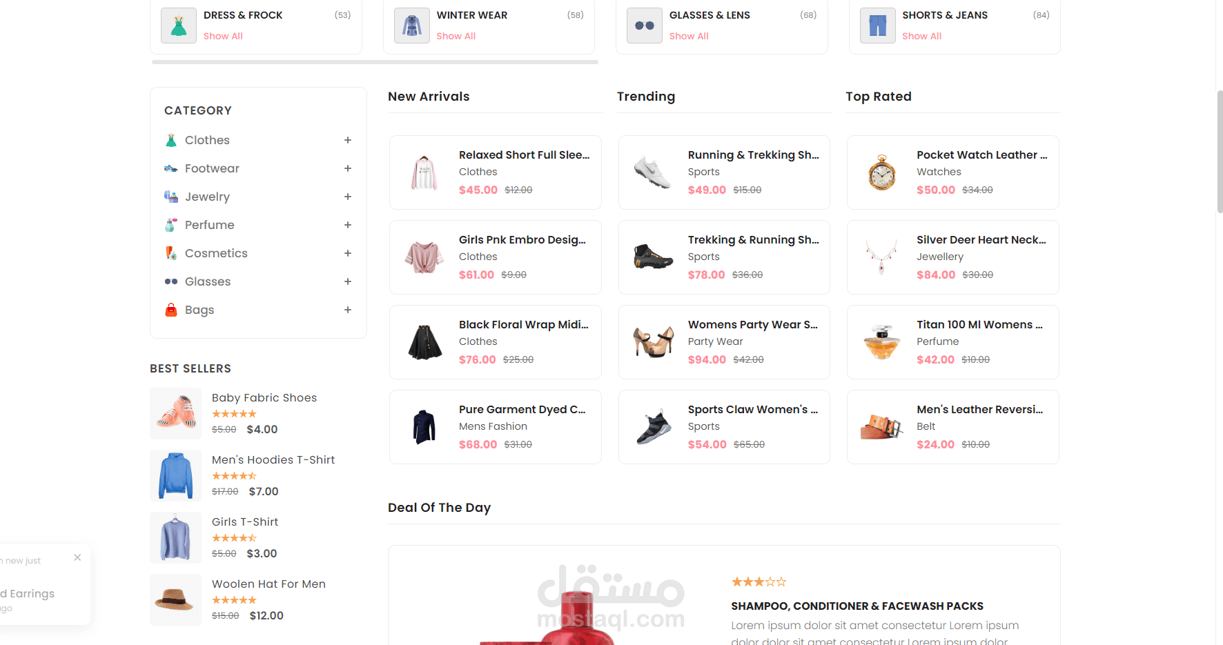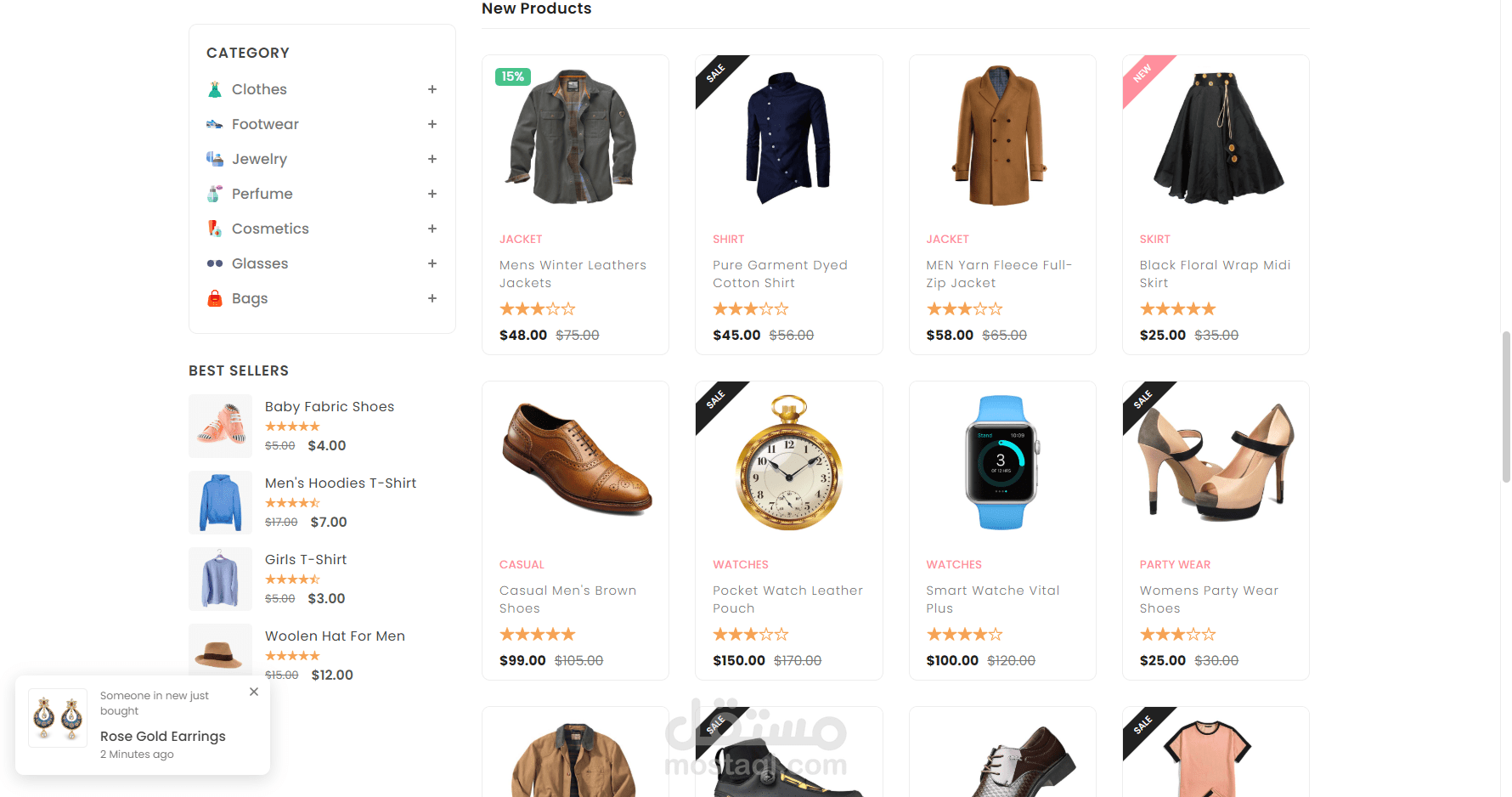 مشروع E-Commerce Website يهدف إلى إنشاء متجر إلكتروني بواجهة مستخدم عصرية وسهلة الاستخدام، يتيح للمستخدم تصفح المنتجات، عرض التفاصيل، والتفاعل مع الموقع بسلاسة.