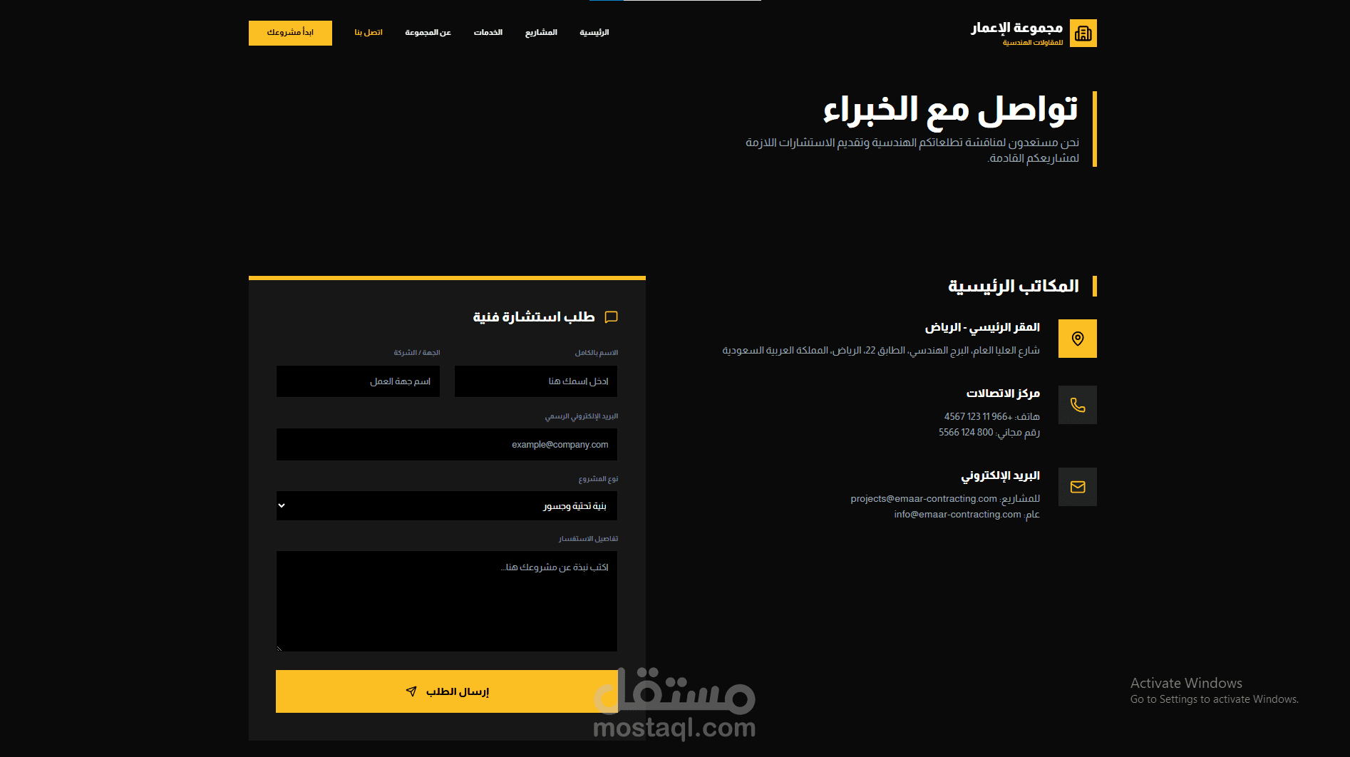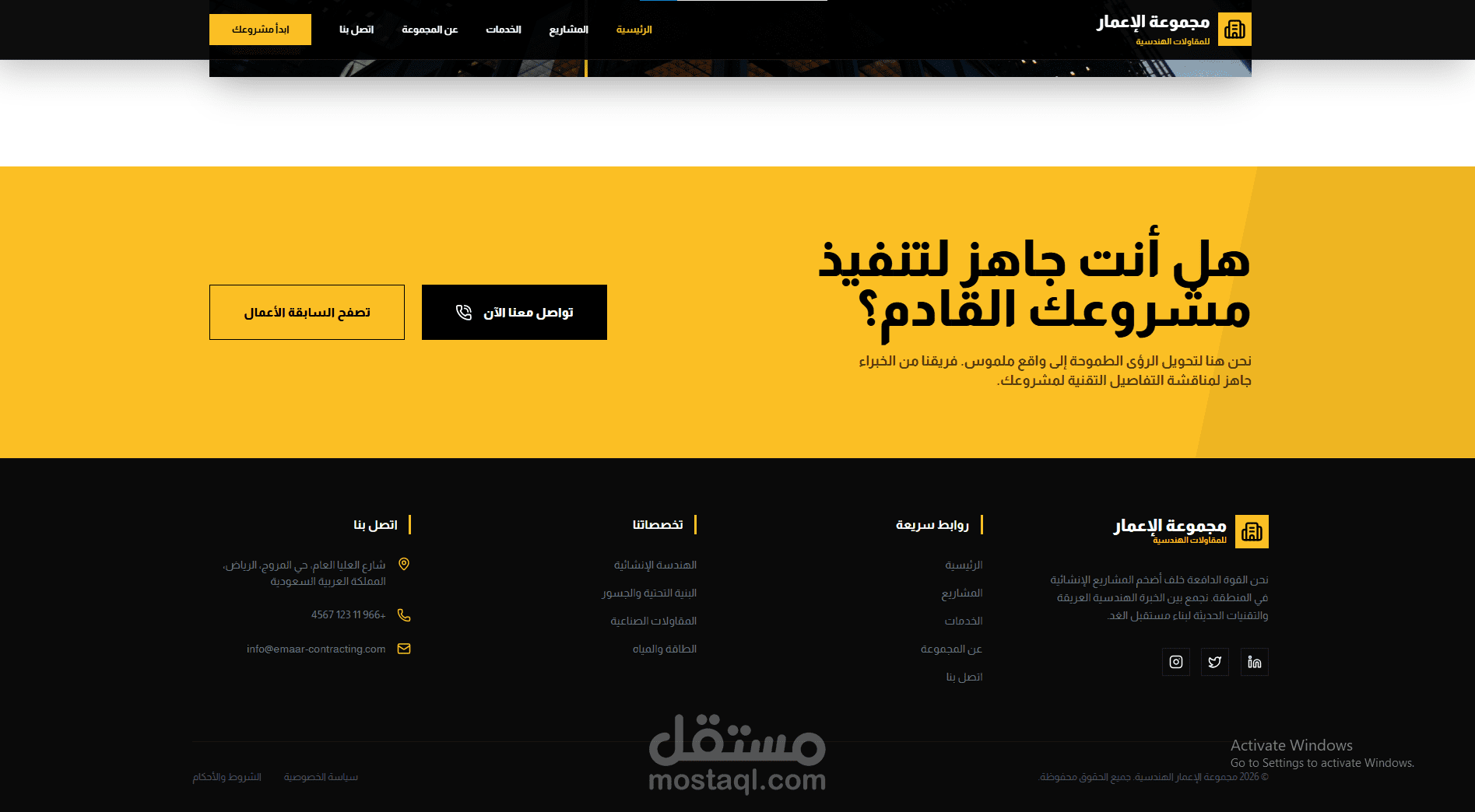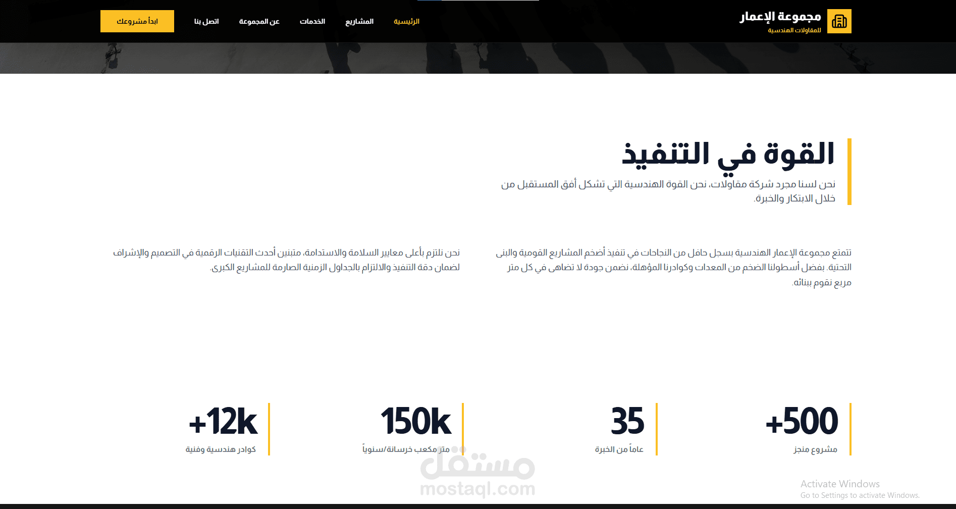 موقع شركة مقاولات كبرى (Major Construction Company Website)