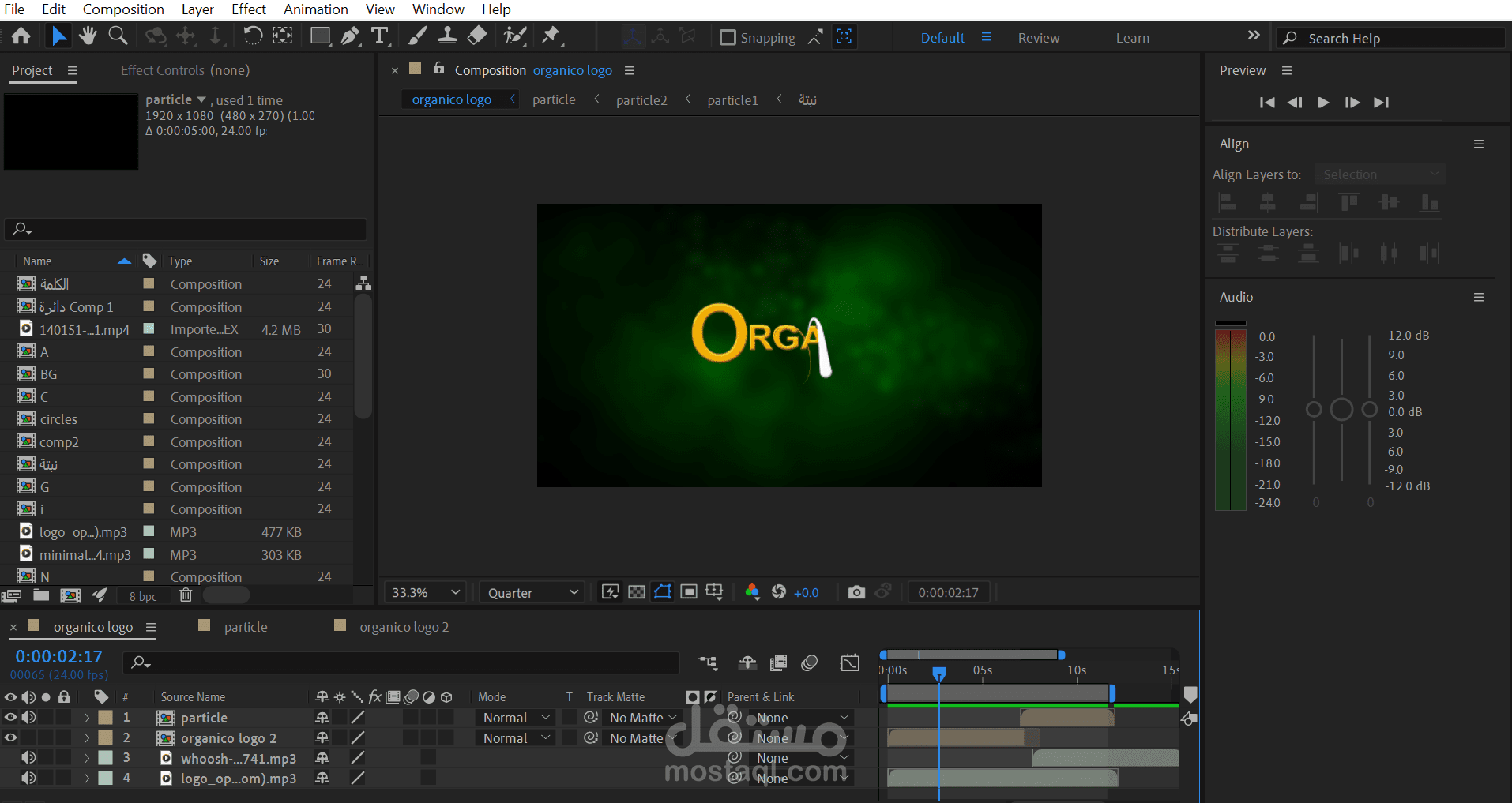 فيديو لوجو أنيميشن تم تصميم الحركة لتجسيد فكرة النمو والطبيعة، حيث تبدأ الحركة بقطرة تتحول تدريجيًا إلى حروف الشعار، ثم تظهر ورقة شجر كرمز للحياة والاستدامة، وتنتهي بتلاشي ناعم